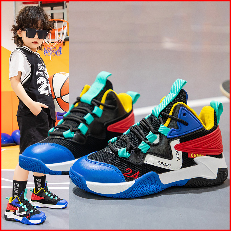 99k-kids Sepatu Anak Laki - Laki Breathable High Top Strap Size 32-39 5712 Sneaker Basketball Shoes Boys