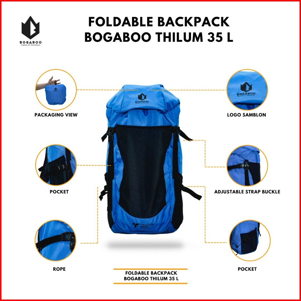 Foldable Backpack Bogaboo 35 Liter Thilum - Tas Gunung Lipet 35 Waterproof - Tas Summit - Tas Carrier Lipat - Tas Ransel