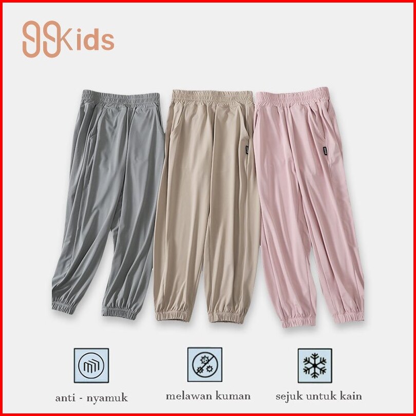 99k-kids Casual Plain Jogger Long Pants Strech Waisted 3376 Size 110 - 160