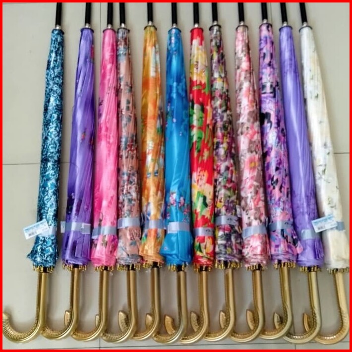 Payung 16 Jari Satin Saten Besar Standar Motif Bunga Kembang Umbrella Kuat Anti Hujan Uv Lucu Warna
