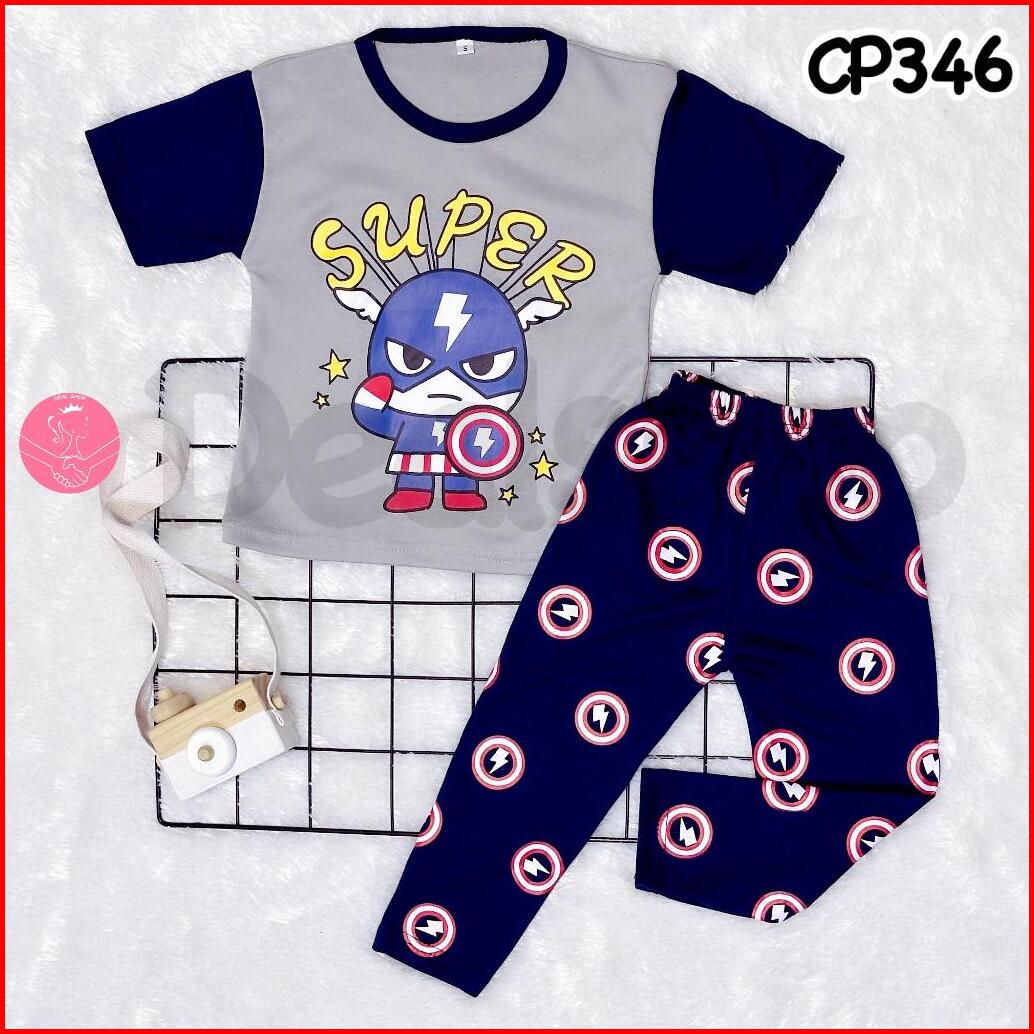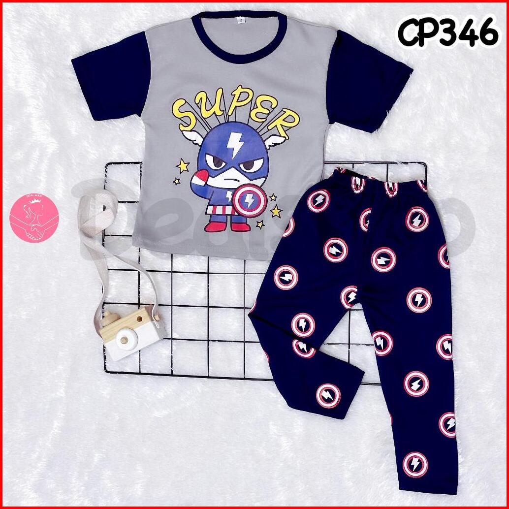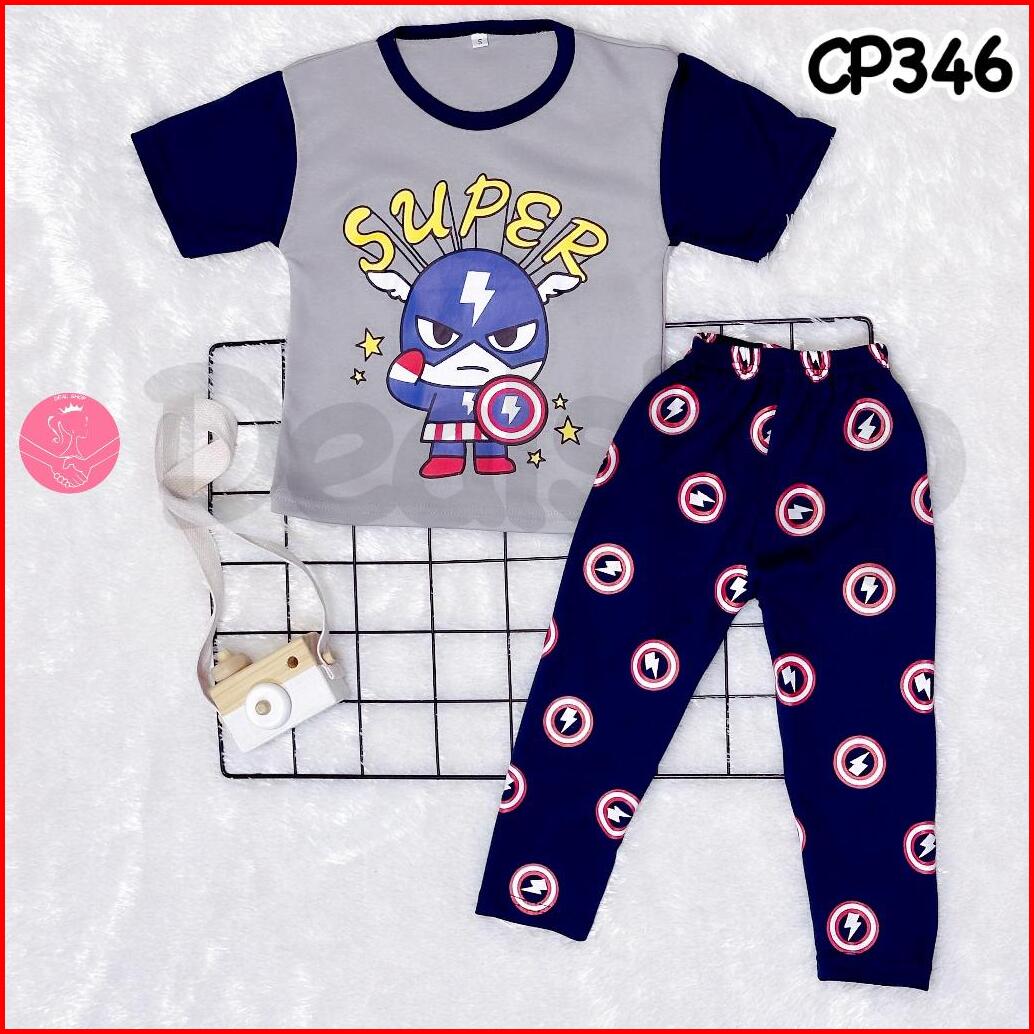 Dealshop Baju Tidur Anak Lengan Pendek Untuk 1-10 Tahun Setelan Anak Cowok Stelan Anak Laki Laki Set Piyama Anak Motif C