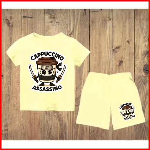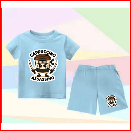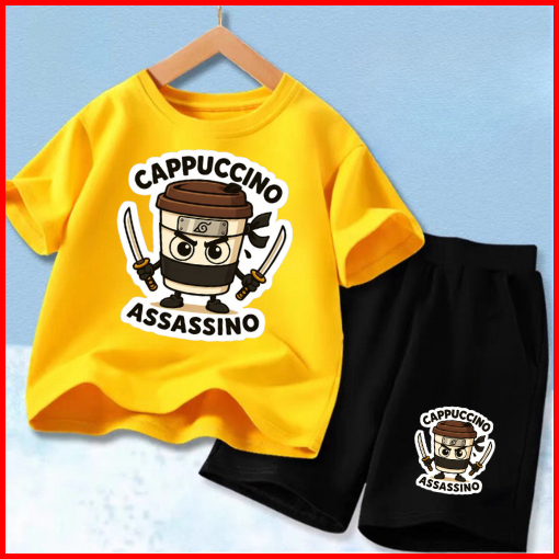 Setelan Anak Untuk 2- 11 Tahun Motif Cappucino Assasino Stelan Kaos Santai Baju Kaos Anak Lengan Dan Celana Pendek Hp Ca
