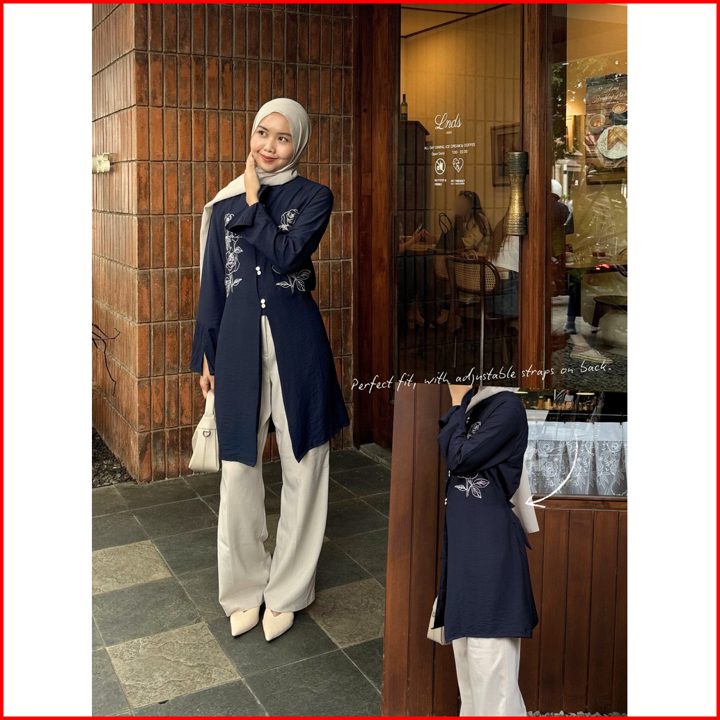 Mazaya Tunik Bordir-baju Melayu Terbaru Atasan Wanita Muslim- Baju Lebaran Terbaru
