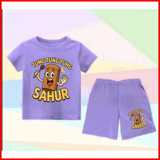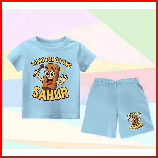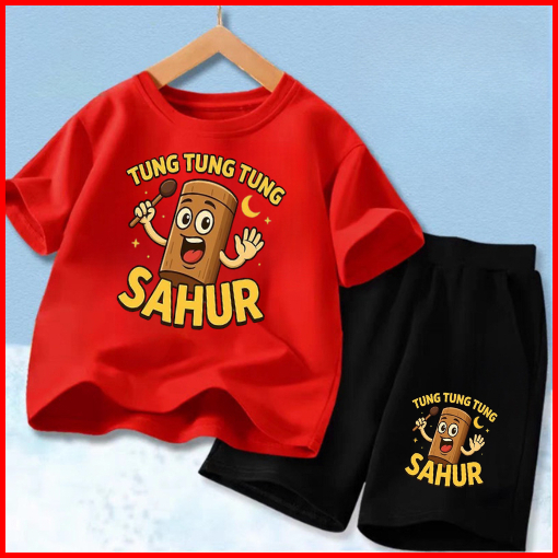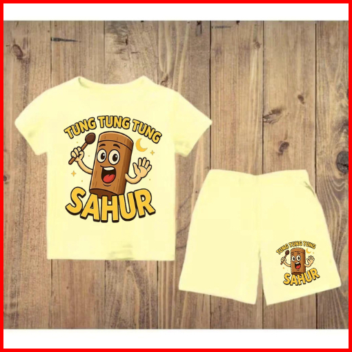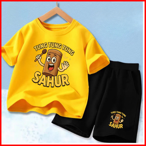 Setelan Anak Untuk 2- 11 Tahun Motif Tung Tung Sahur Stelan Kaos Santai Baju Kaos Anak Lengan Dan Celana Pendek Hp Tung