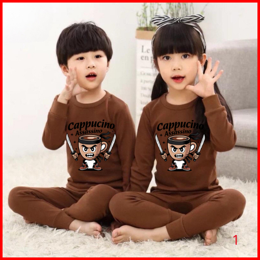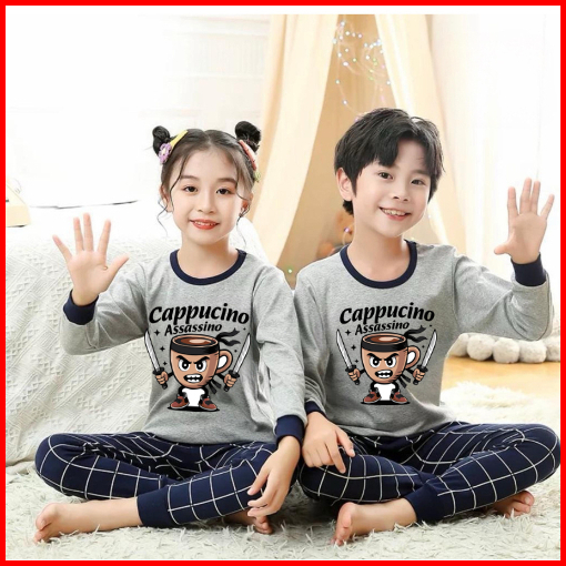 Dealshop Baju Tidur Anak Untuk Umur 1 - 10 Tahun Motif Cappucino Gigi Setelan Anak Laki - Laki Stelan Anak Perempuan Pia