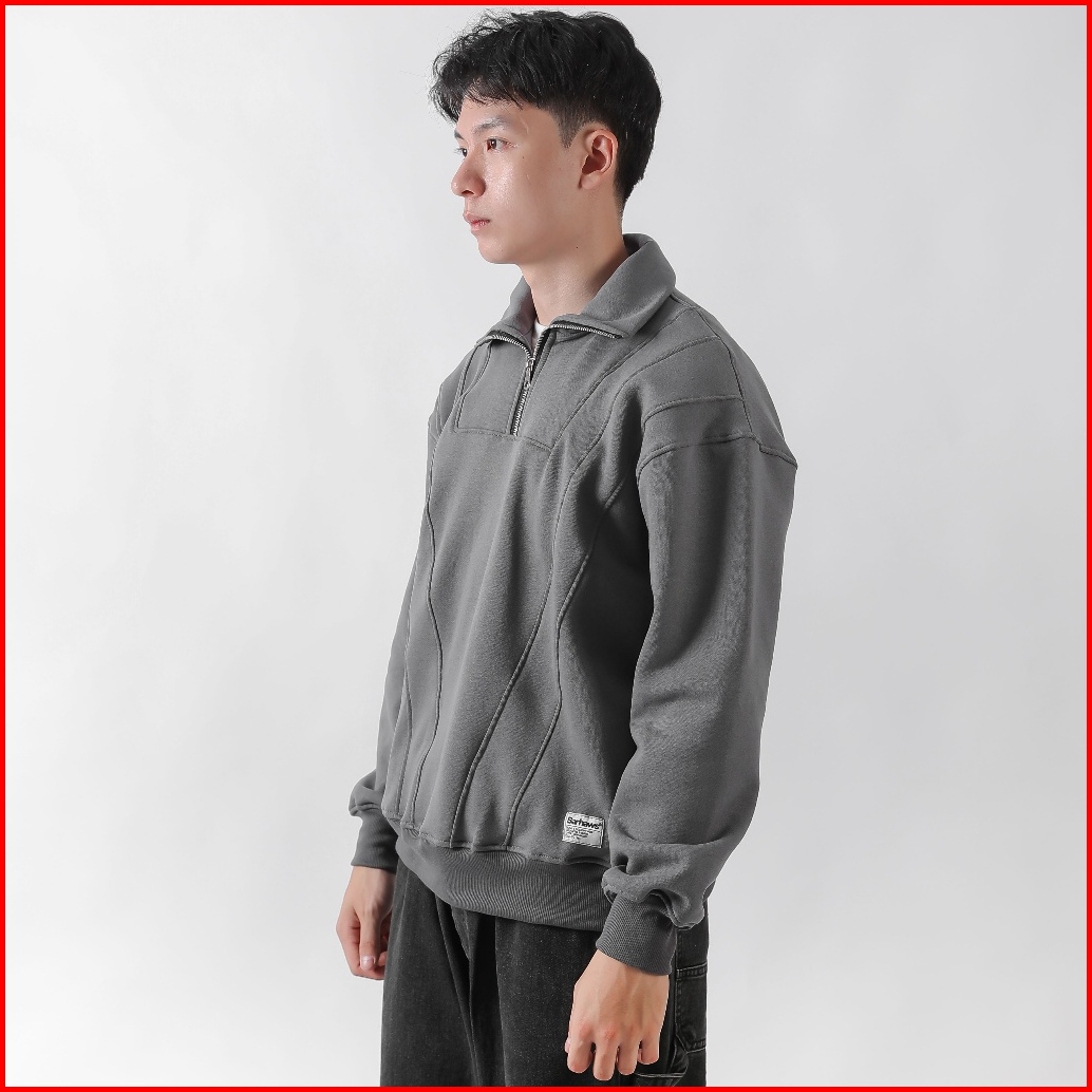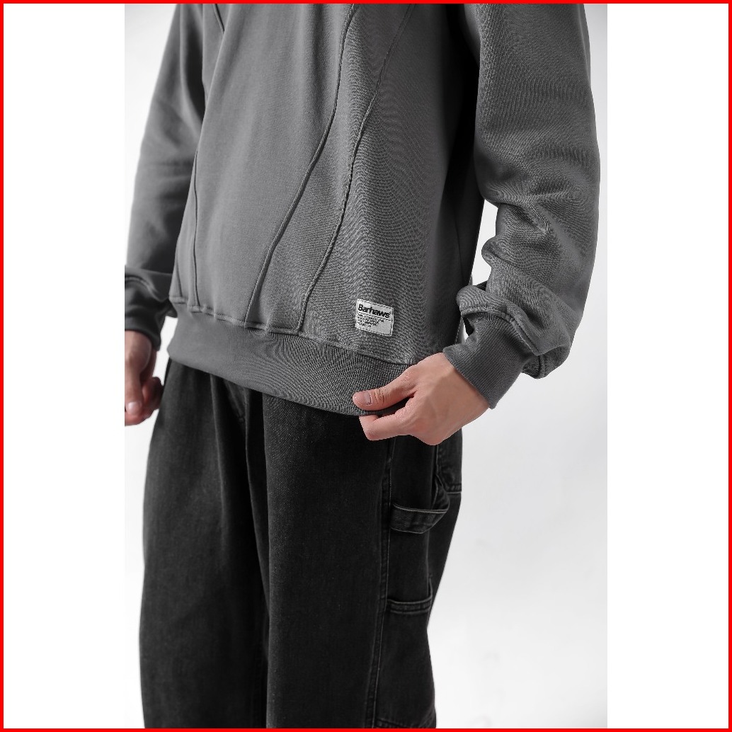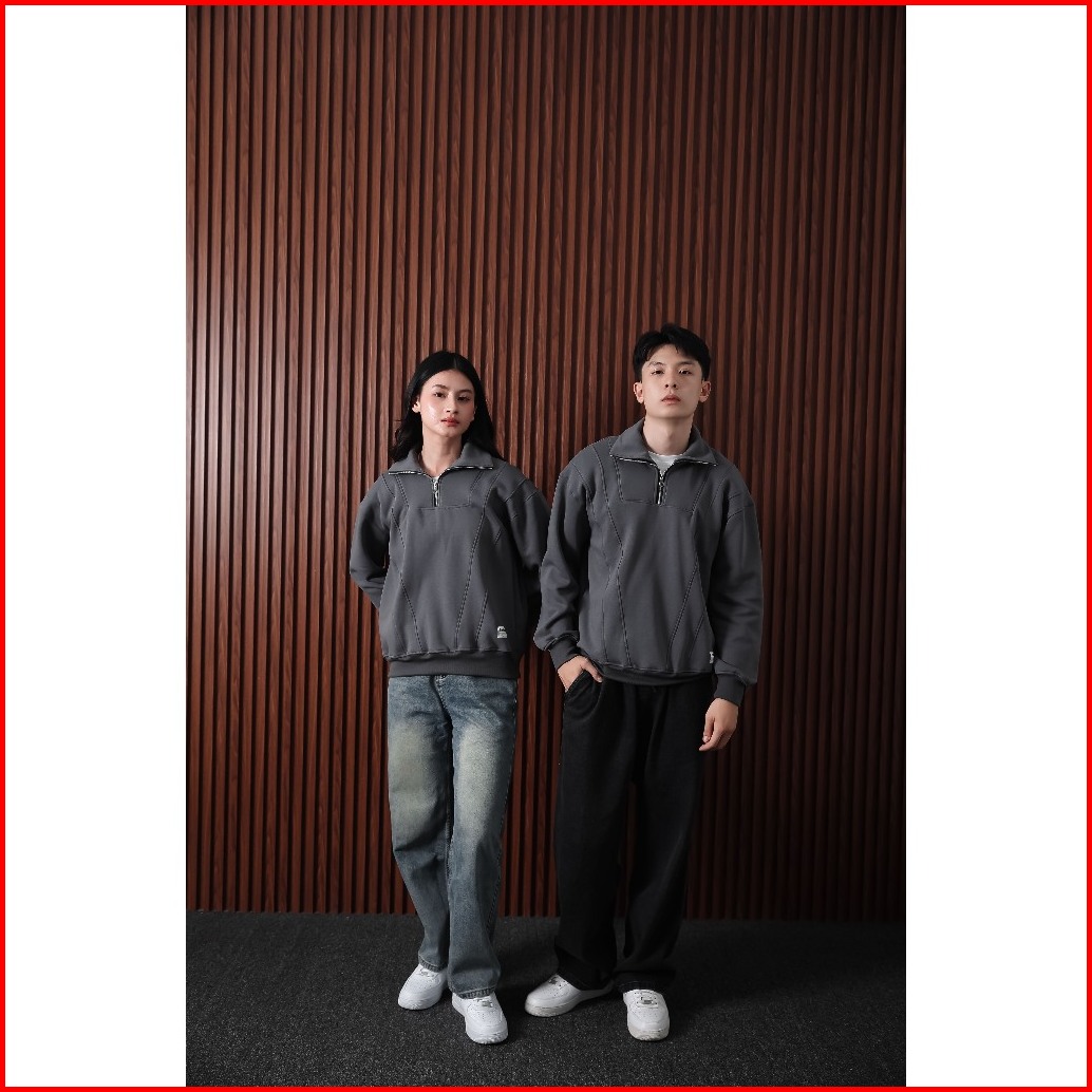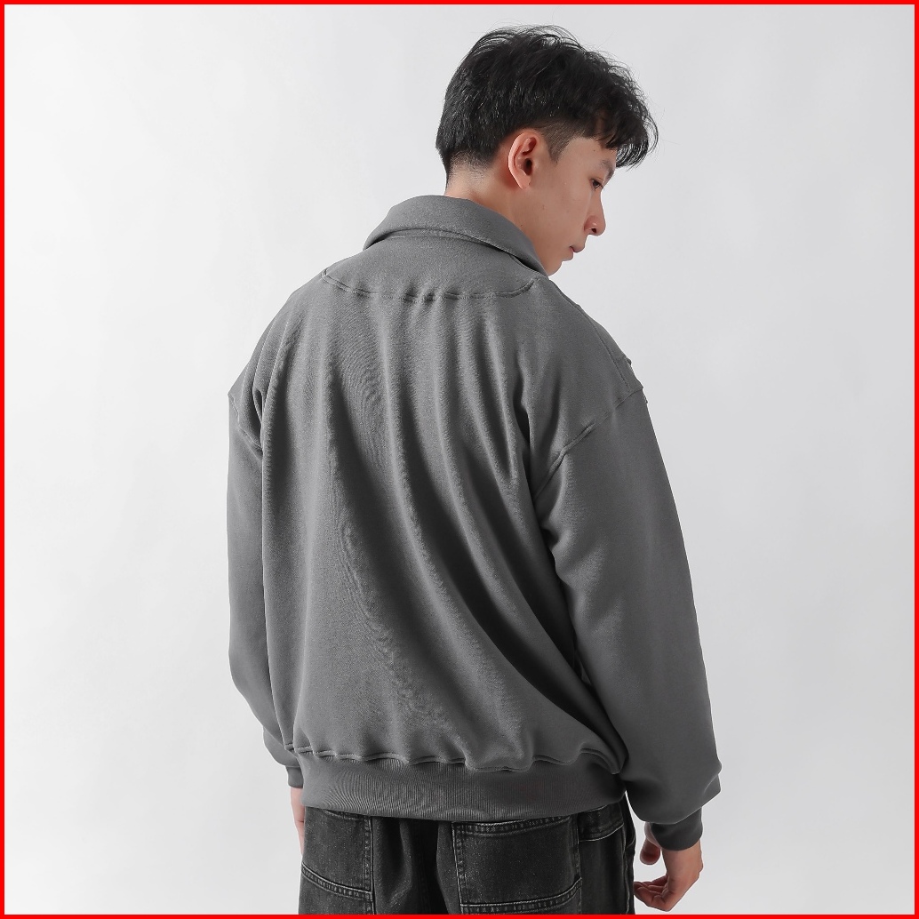 Barhaws - Sweater Half Zipper Boxy Cotton Pria Wanita Warna Grey