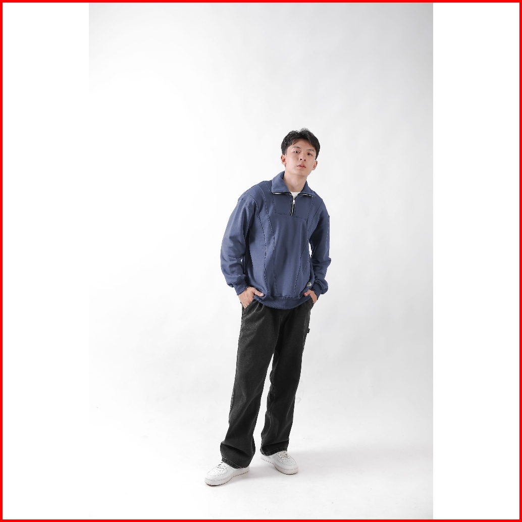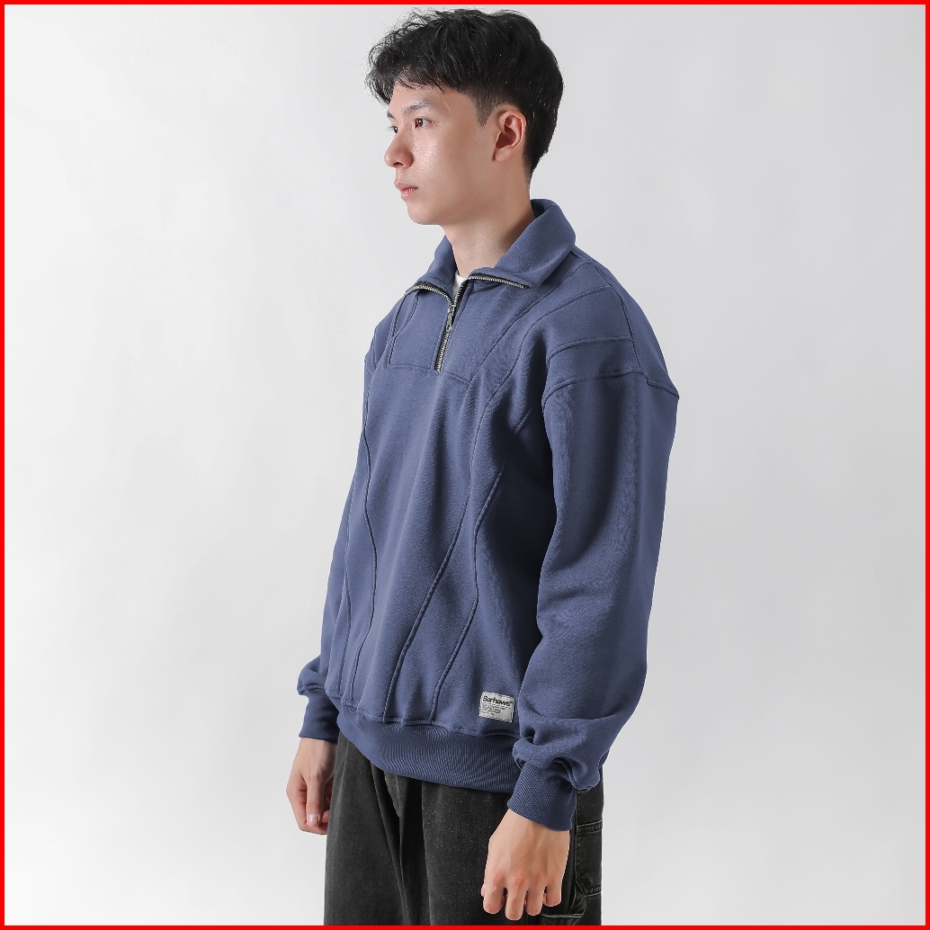 Barhaws - Sweater Half Zipper Boxy Cotton Pria Wanita Warna Denim