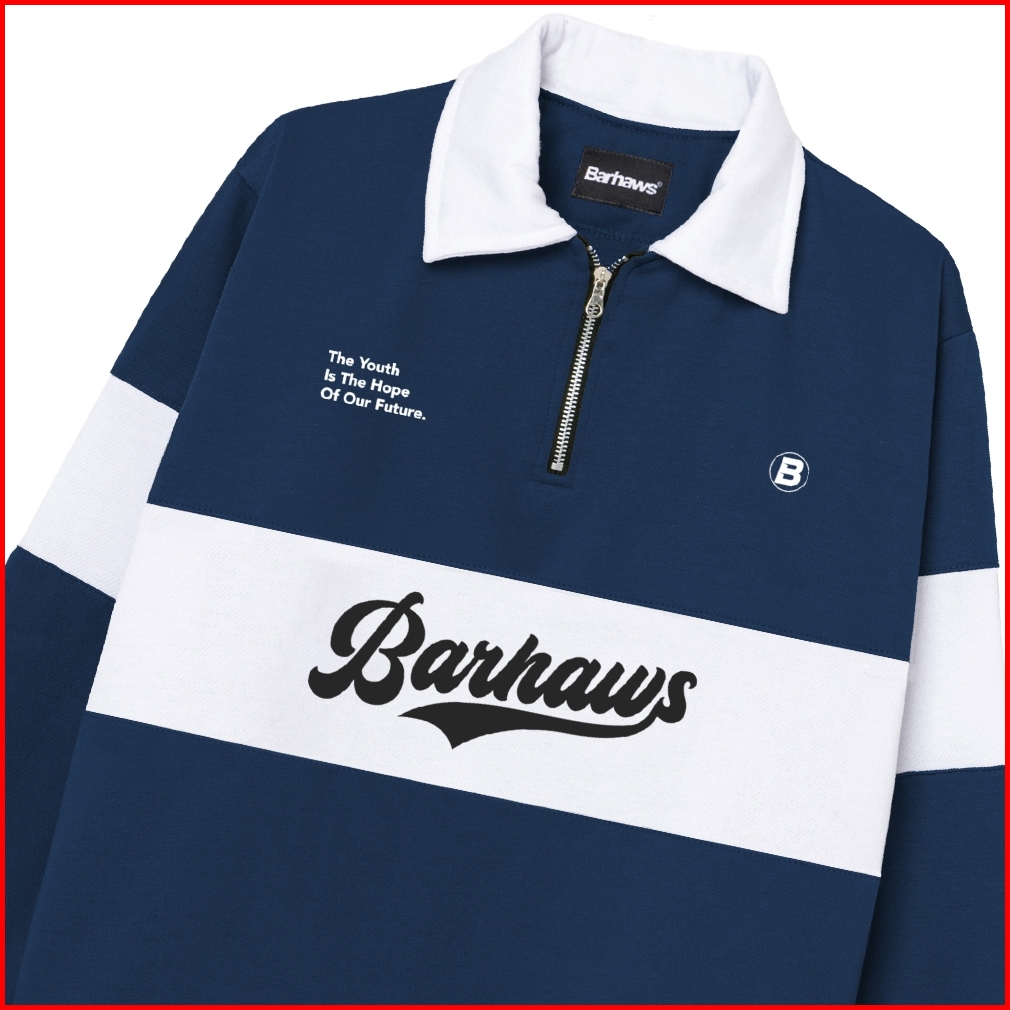 Barhaws - Sweater Half Zipper Rugby Navy Kombinasi Putih