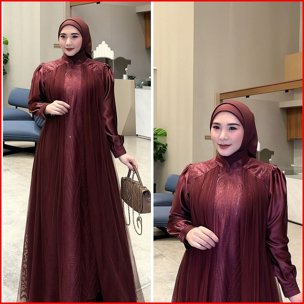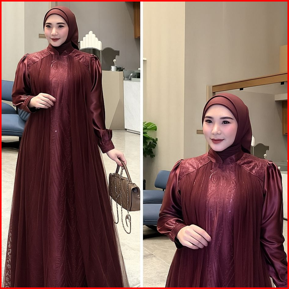 Dress Leya Gamis Brukat Mix Tile Mewah Dress Kondangan Pesta Elegant Dress Muslim Dewasa