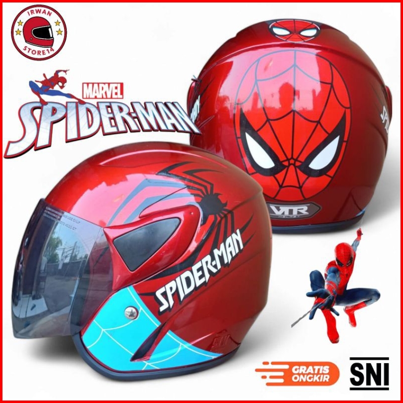 Helm Anak Spider Man 4 5 6 7 8tahun Lingkar Kepala Max 55 Cm Sni