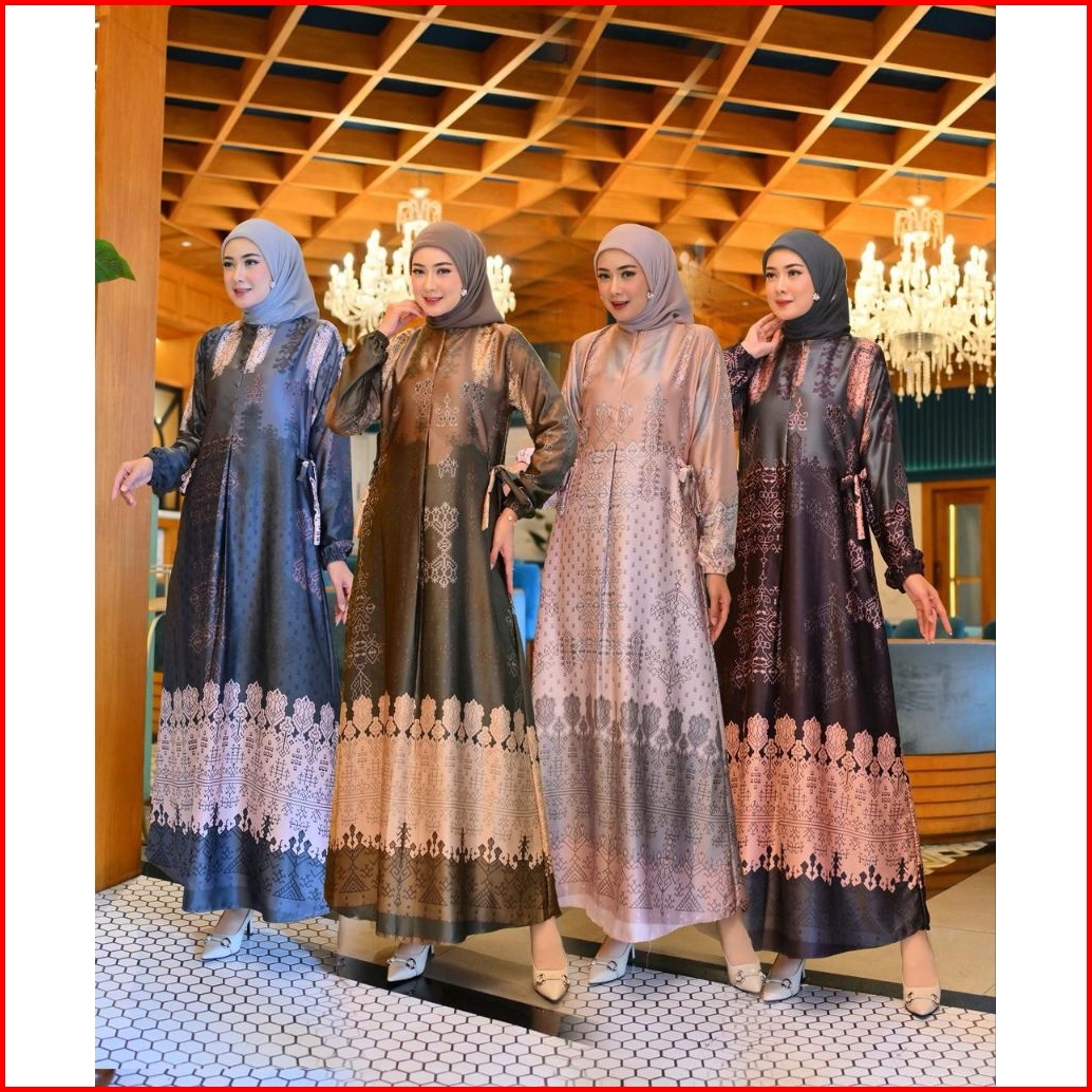 Fee Hijab Dress Gamis Silk Premium Motif Terbaru Berbahan Halus Dan Mengkilap Gamis Lebaran Gamis Pesta