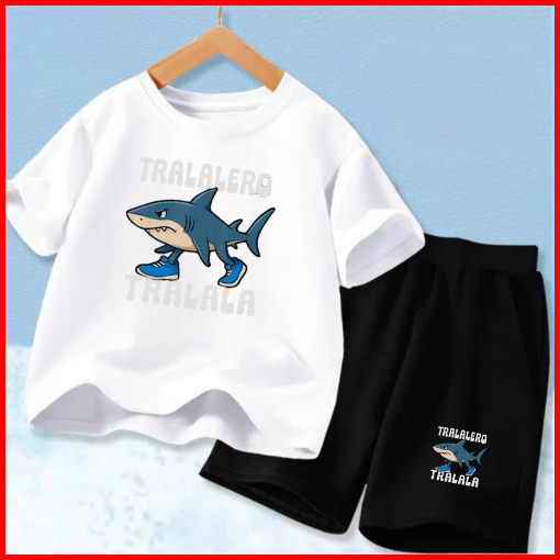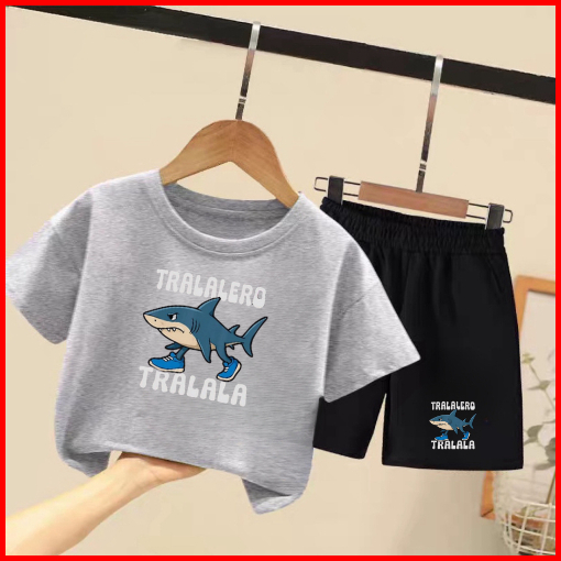 Setelan Anak Untuk 2- 11 Tahun Motif Tralalero Tralala Stelan Kaos Santai Baju Kaos Anak Lengan Dan Celana Pendek Hp Tra