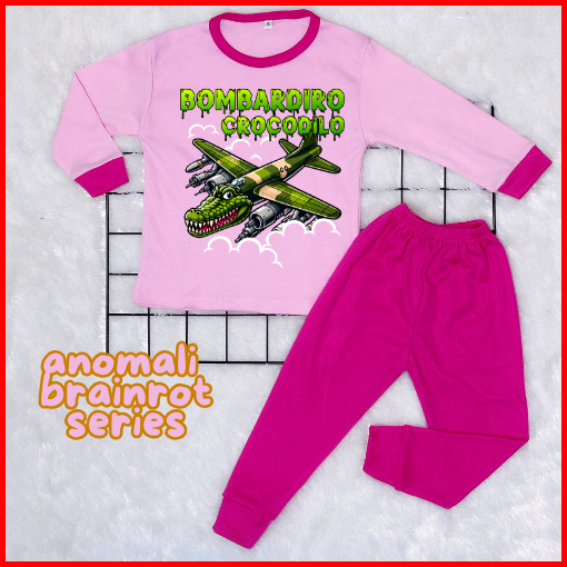 Dealshop Baju Tidur Anak Untuk Umur 1 - 10 Tahun Motif Bombardino Crocodilo Setelan Anak Laki - Laki Stelan Anak Perempu