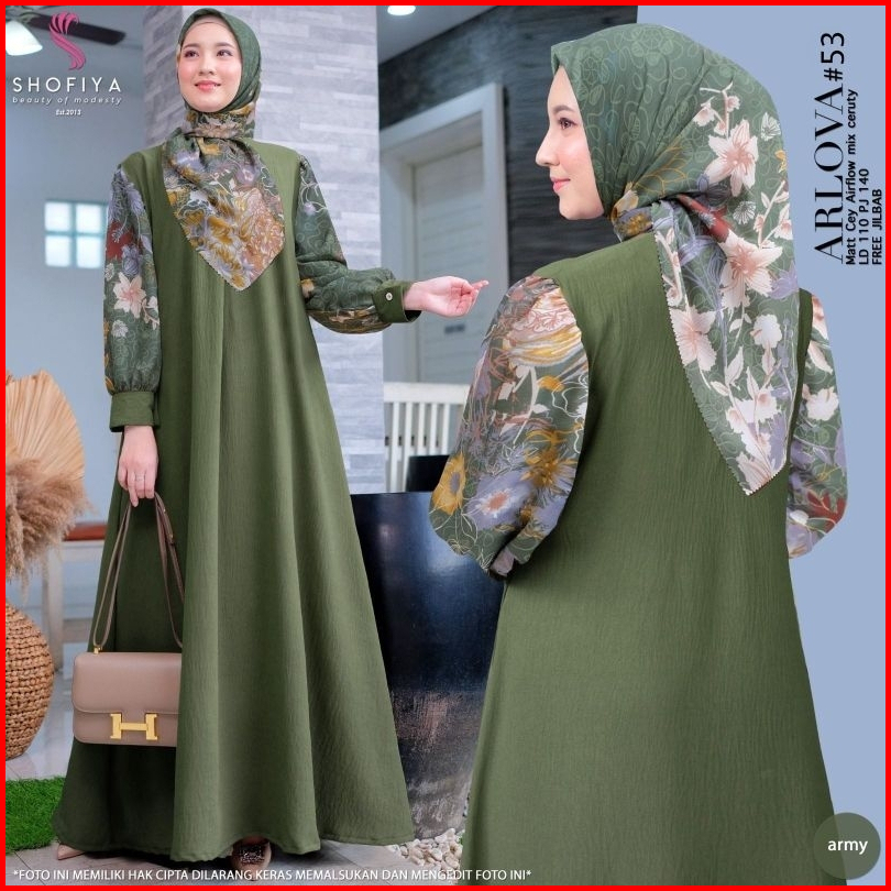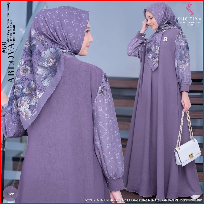 Arlova Set Jilbab Gamis Syari Lebaran Wanita Fashion Busana Muslim Best Seller Original