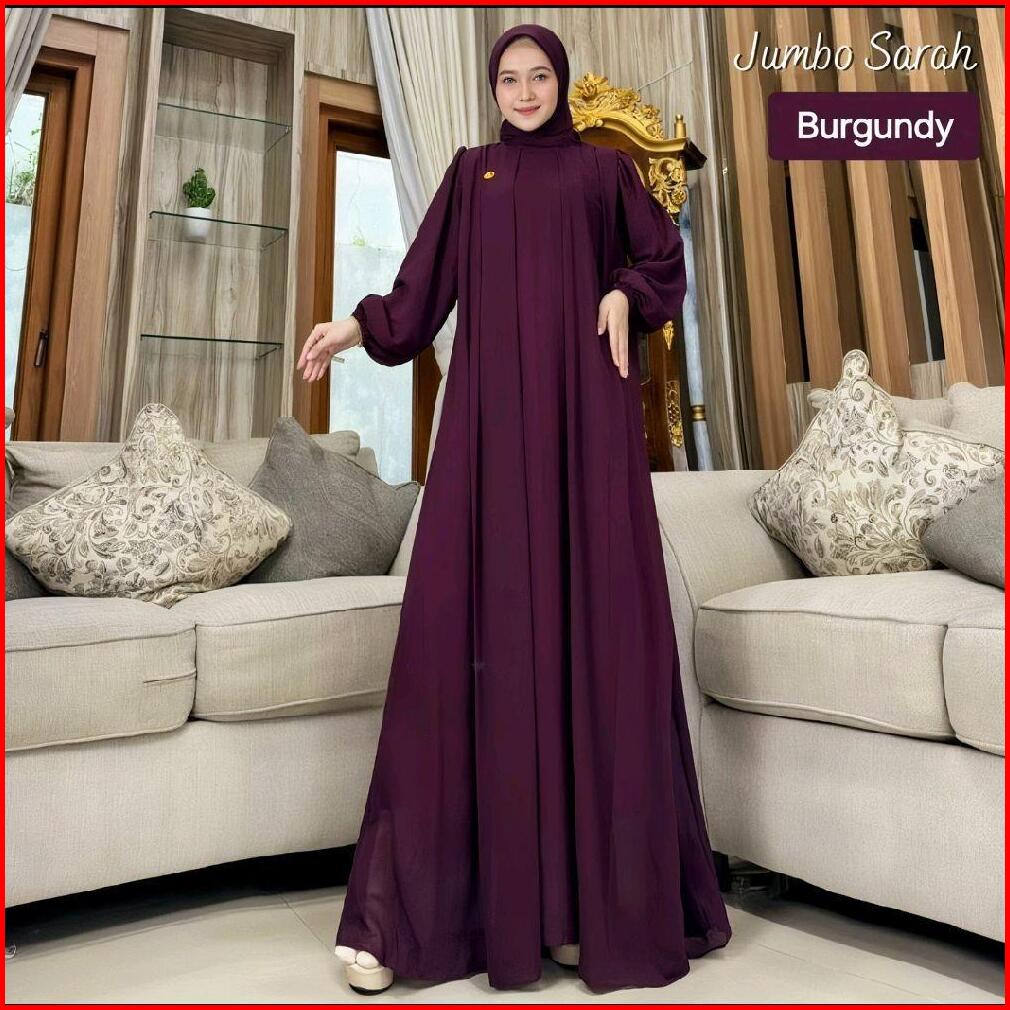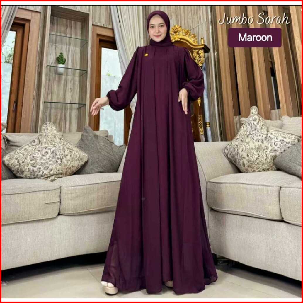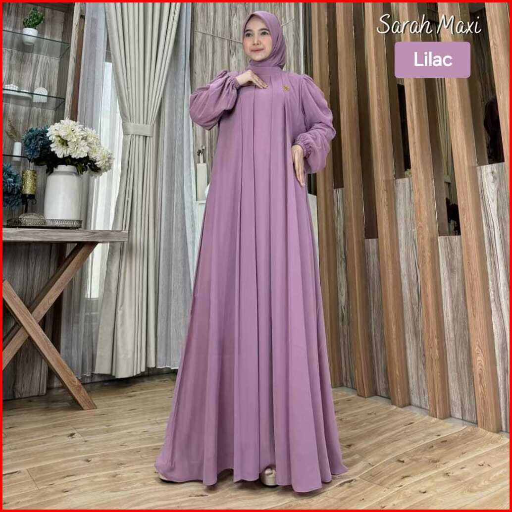 Dress Sarah Maxi Gamis Pesta Mewah Elegan Bahan Ceruty Lengan Balon Non Busui