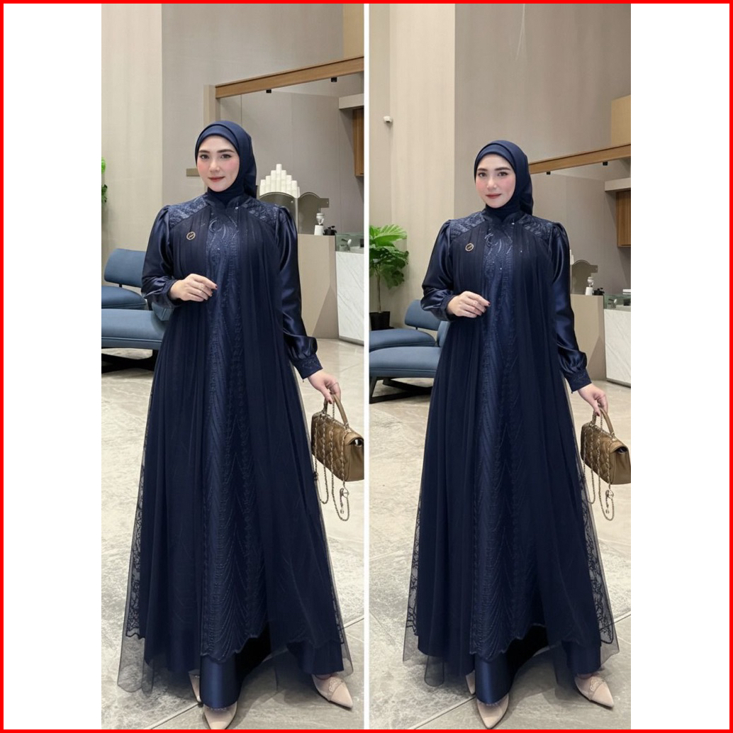 Gamis Lebaran 2026 Velvet Mix Brokat Aplikasi Tile Leya Dress Gamis Mewah Pesta Pernikahan Kondangan Idul Fitri Viral Ke