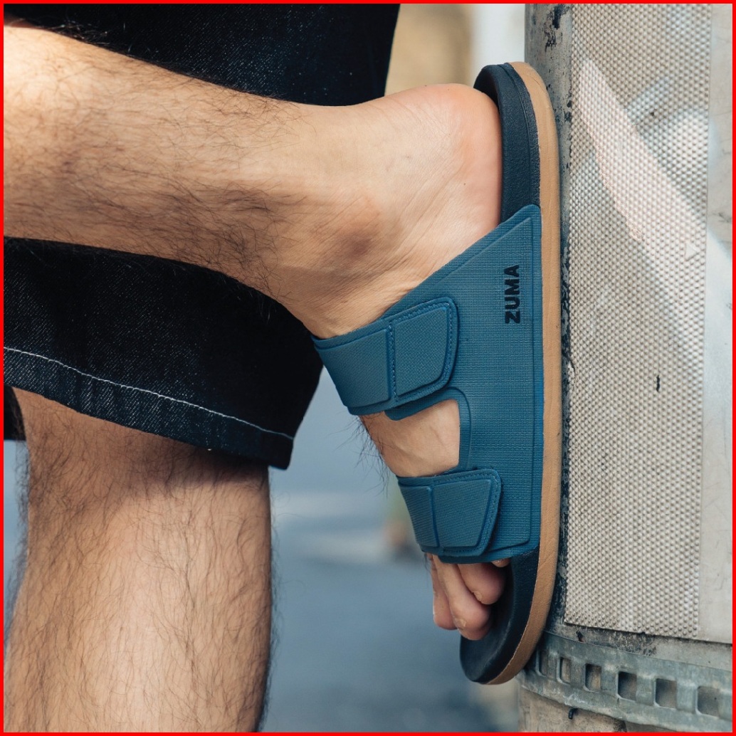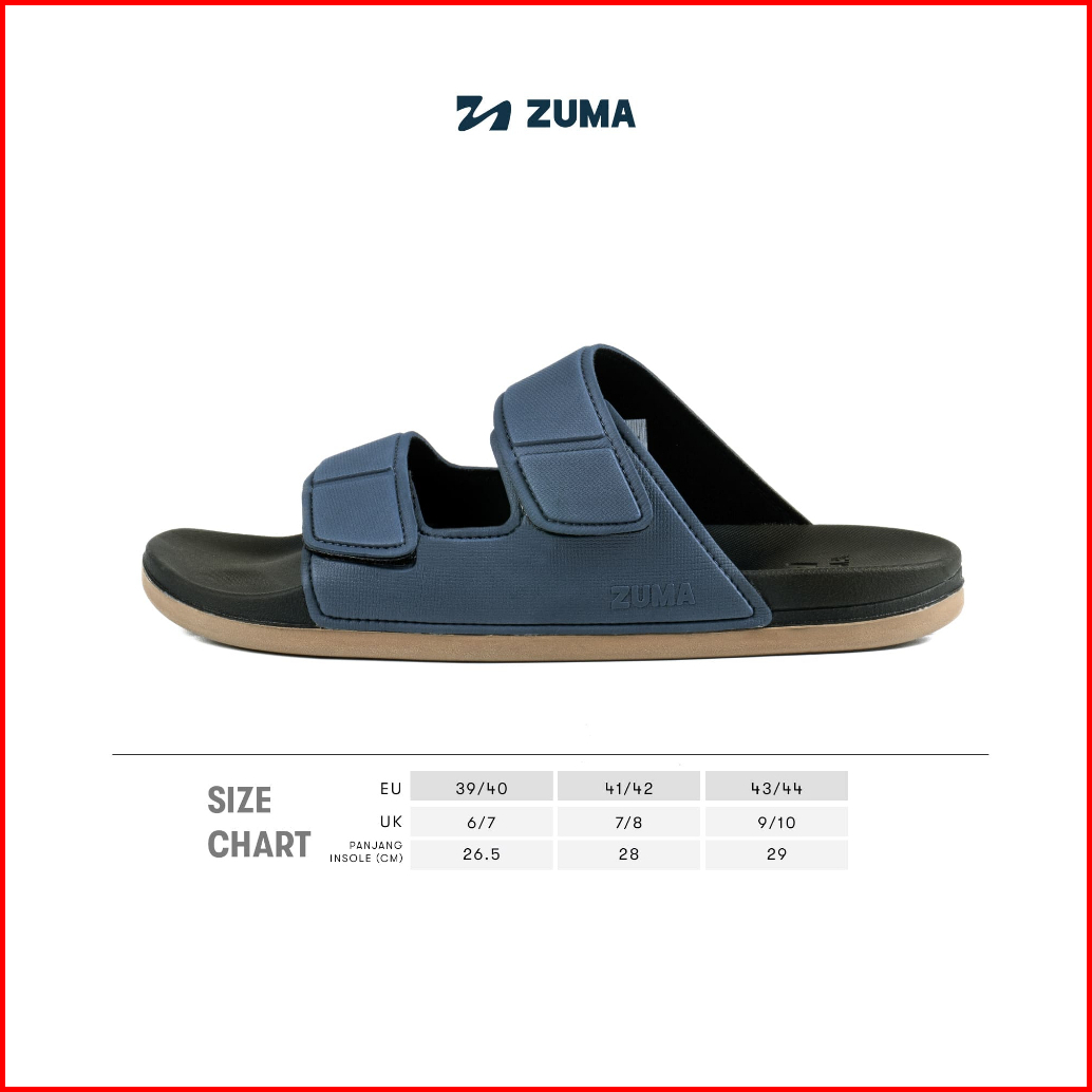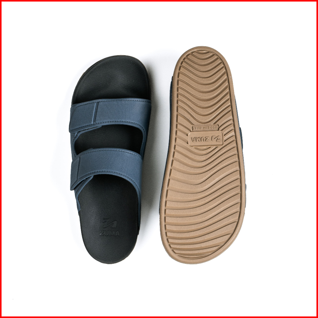Zuma Men Airmove 2 Indigo Tan Sandal Slop Pria Karet Slip On Polos Biru Keunguan