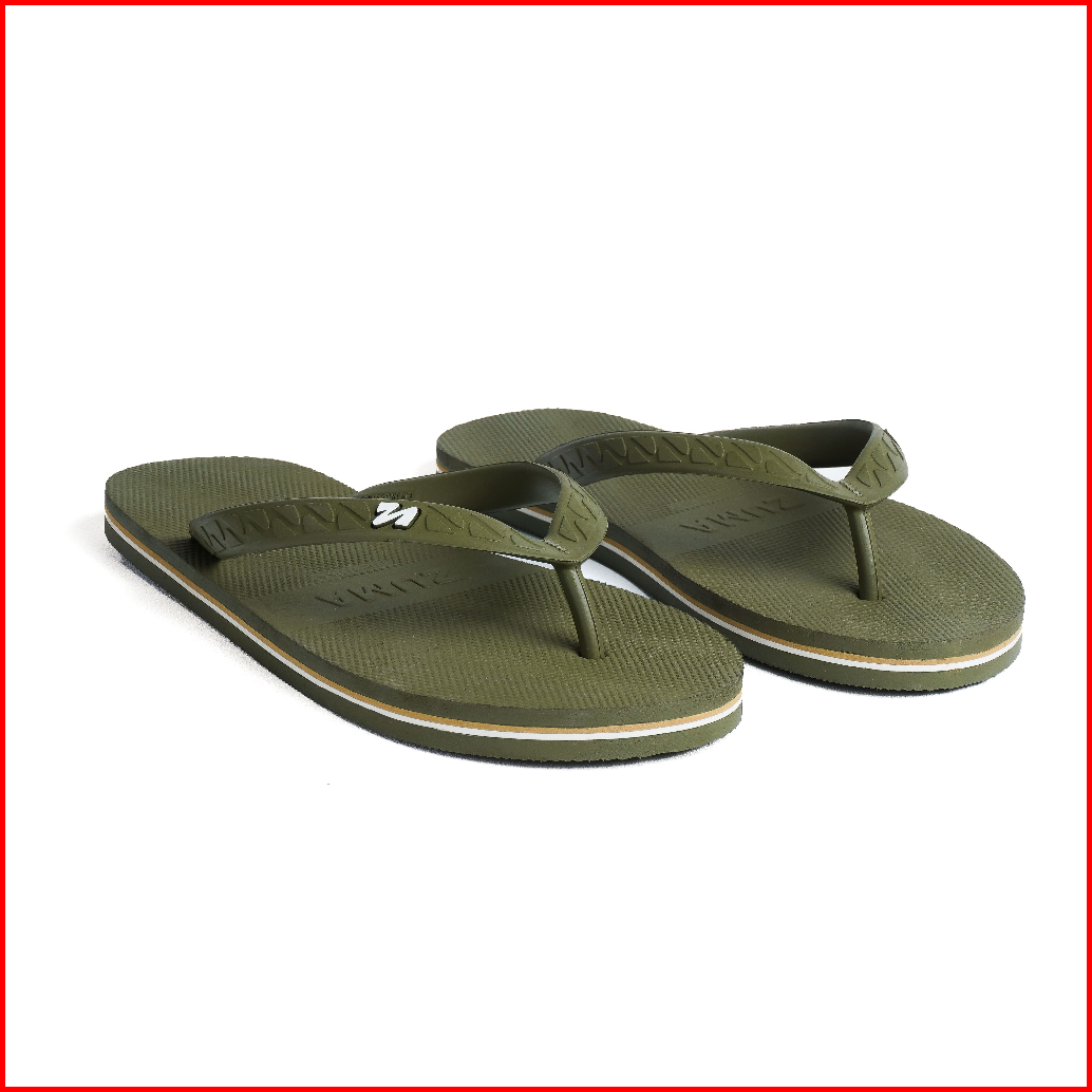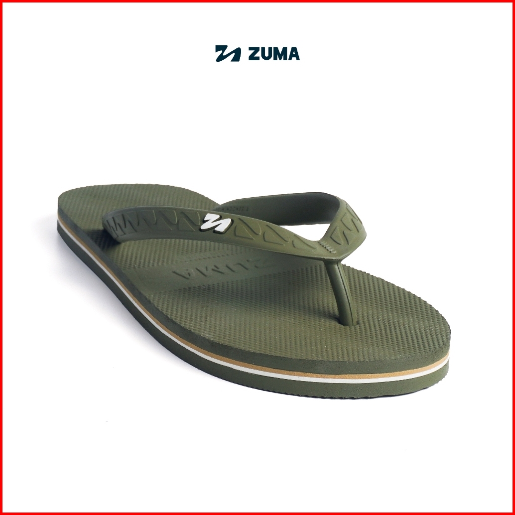 Zuma Men Stripe 14 Army Mocha White Sandal Jepit Pria Karet Polos Hijau Cokelat Putih