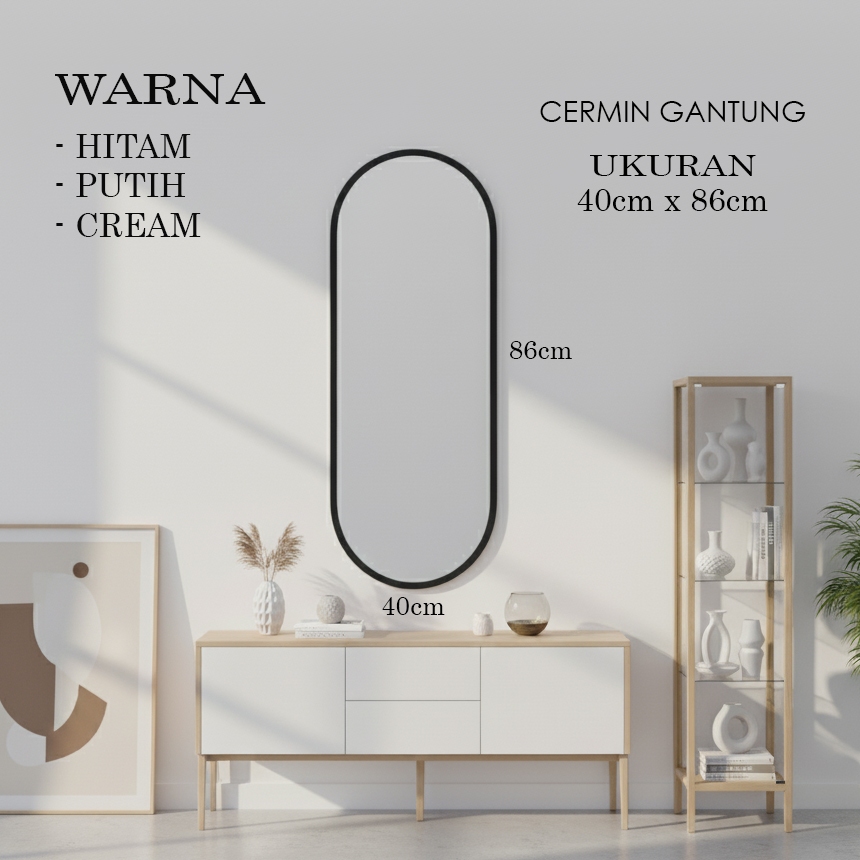 [ Free Packing Kayu ] CERMIN GANTUNG KAPSUL - CERMIN DINDING TERBARU - CERMIN AESTHETIC 40x85 cm