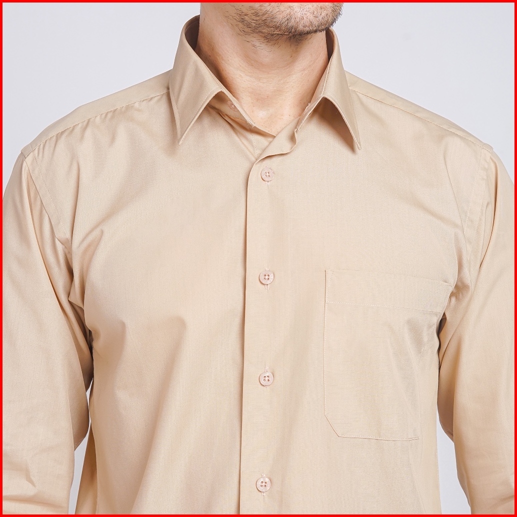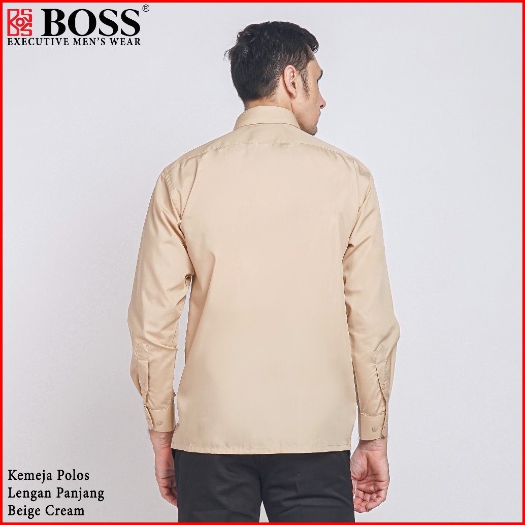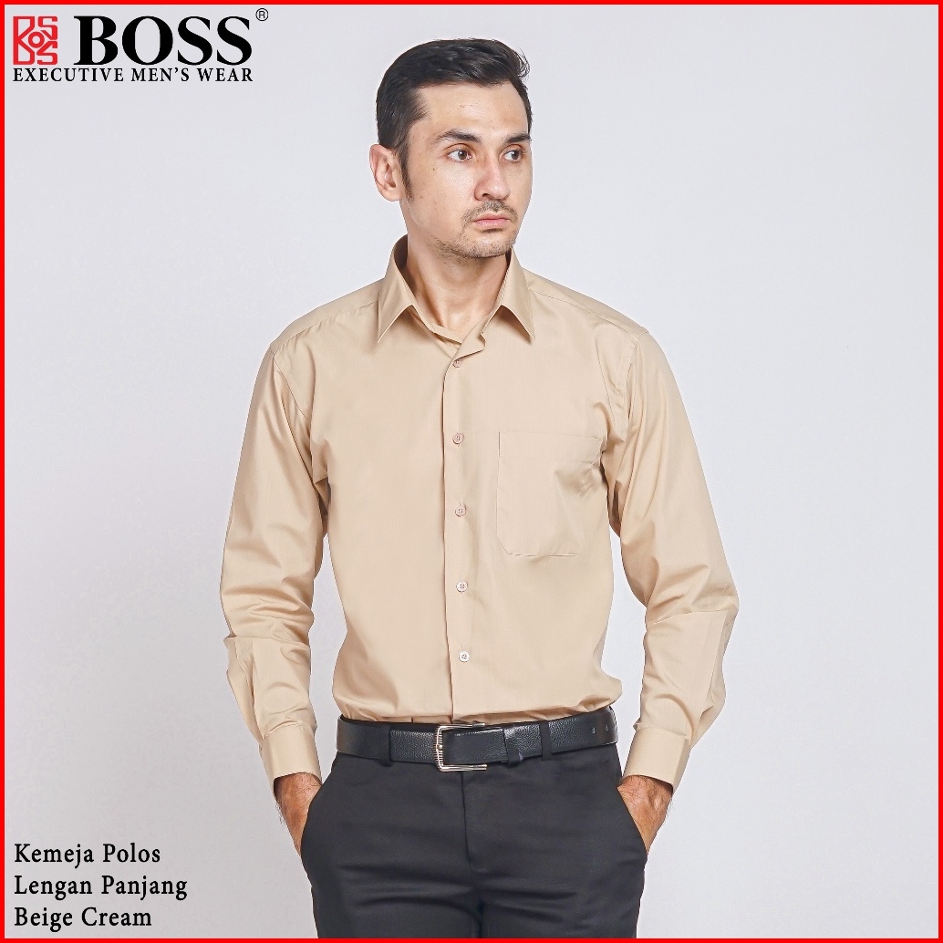 Boss Kemeja Polos Pria Lengan Panjang Regular Fit Coklat Beige Cream