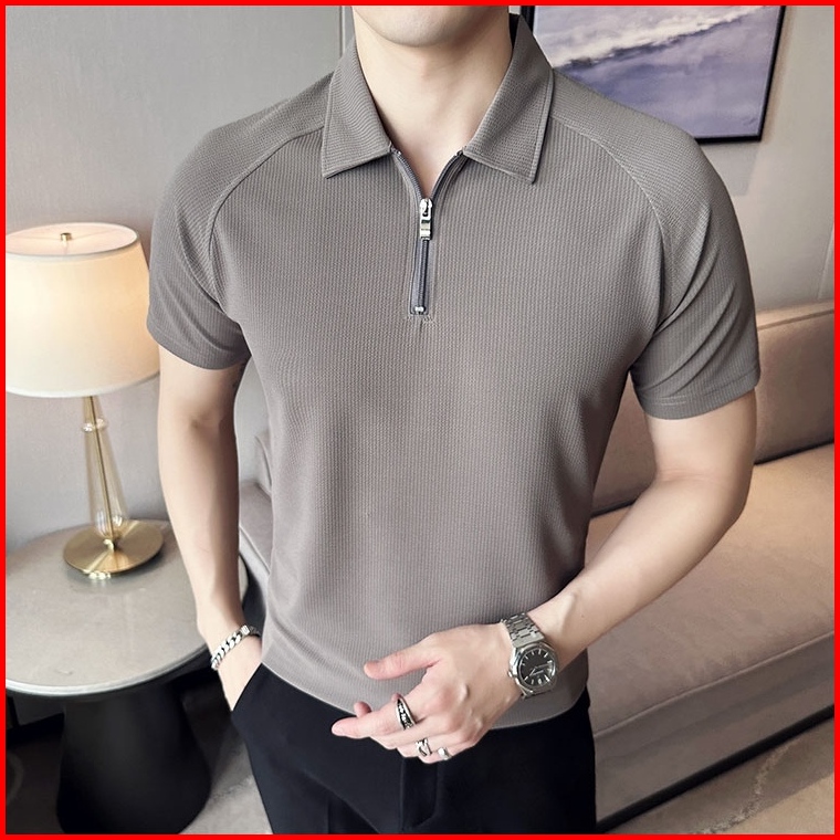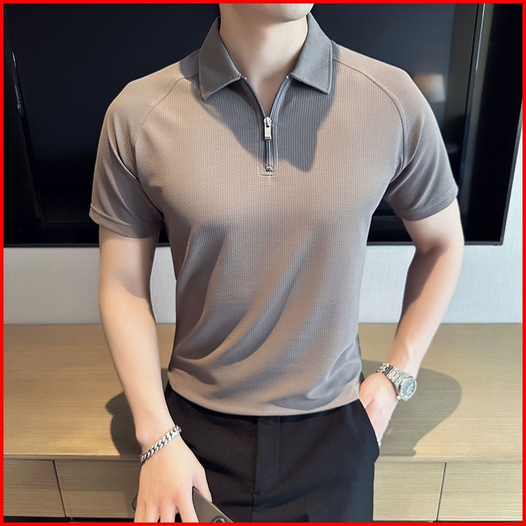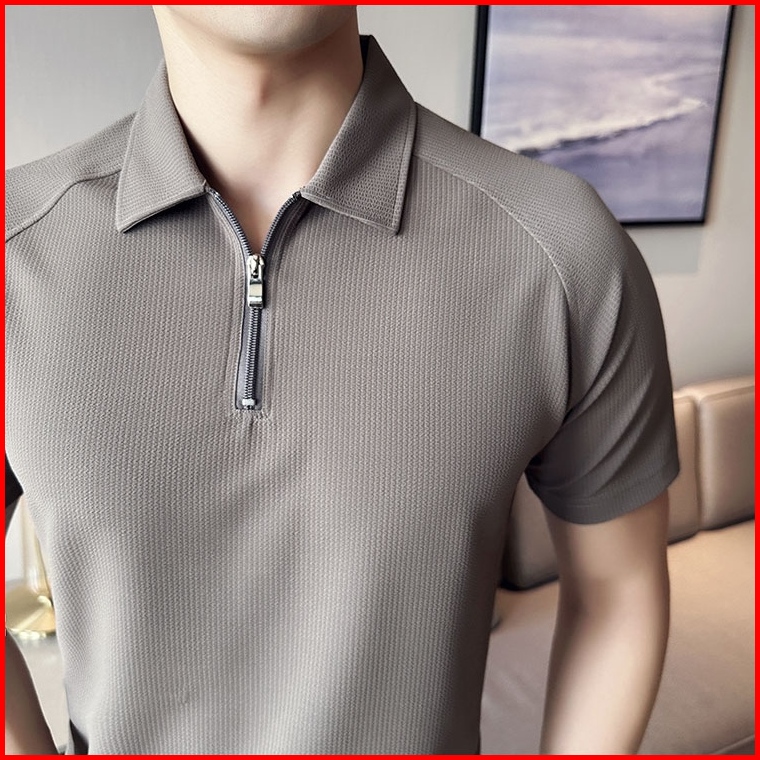 Kaos Polo Shirt Pria Kerah Knit Zipper Slimfit Lengan Pendek Dewasa Bahan Premium Coklat Polos