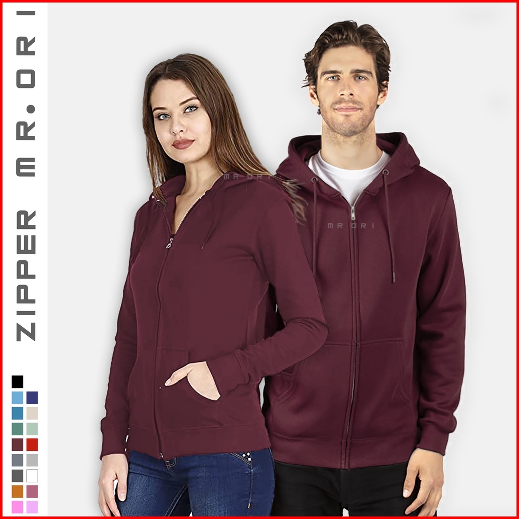Sweater Hoodie Zipper Tebal Size S-xxxl Burgundy Pria Wanita