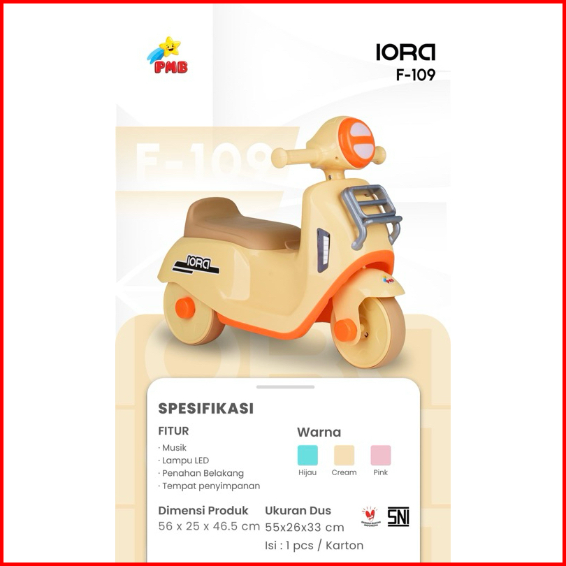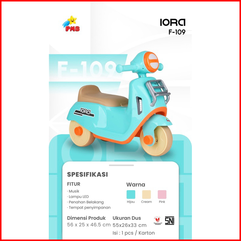 Motor Anak Vespa Balance Bike Mainan Anak Dorong F109