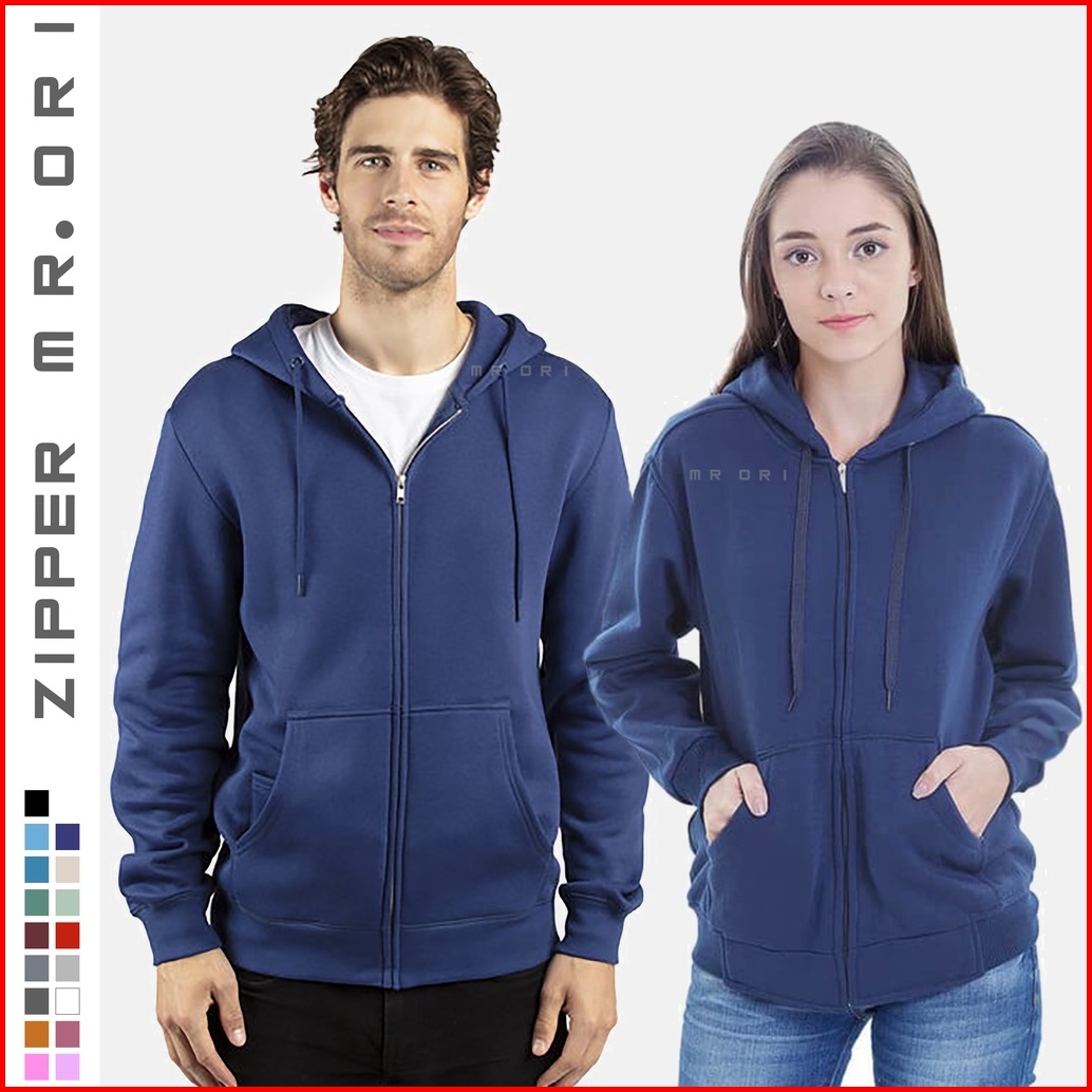 Sweater Hoodie Zipper Tebal Size S-xxxl Navy Pria Wanita