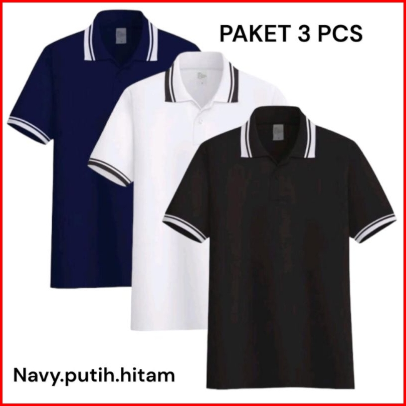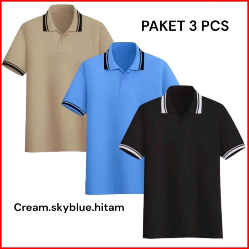 Promo Paket 3 Pcs Kaos Polo Premium Kaos Kerah Stripe Lengan Pendek