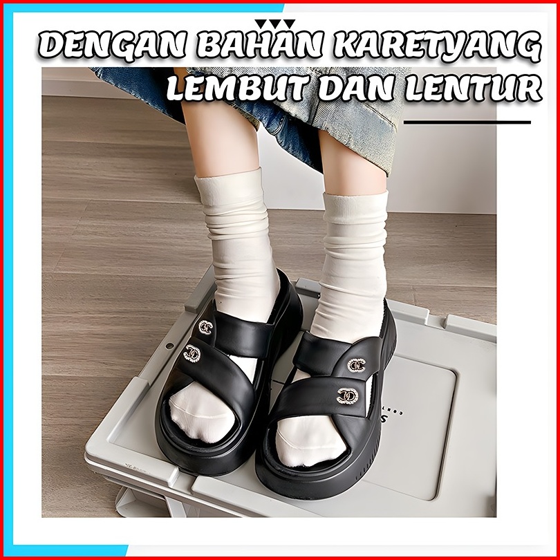 Sandal Wedges Wanita Tali Tinggi 5cm Dewasa Korean Style Platform Eva Sendal Jelly Wanita Empuk Cewek Perempuan Anti Sli