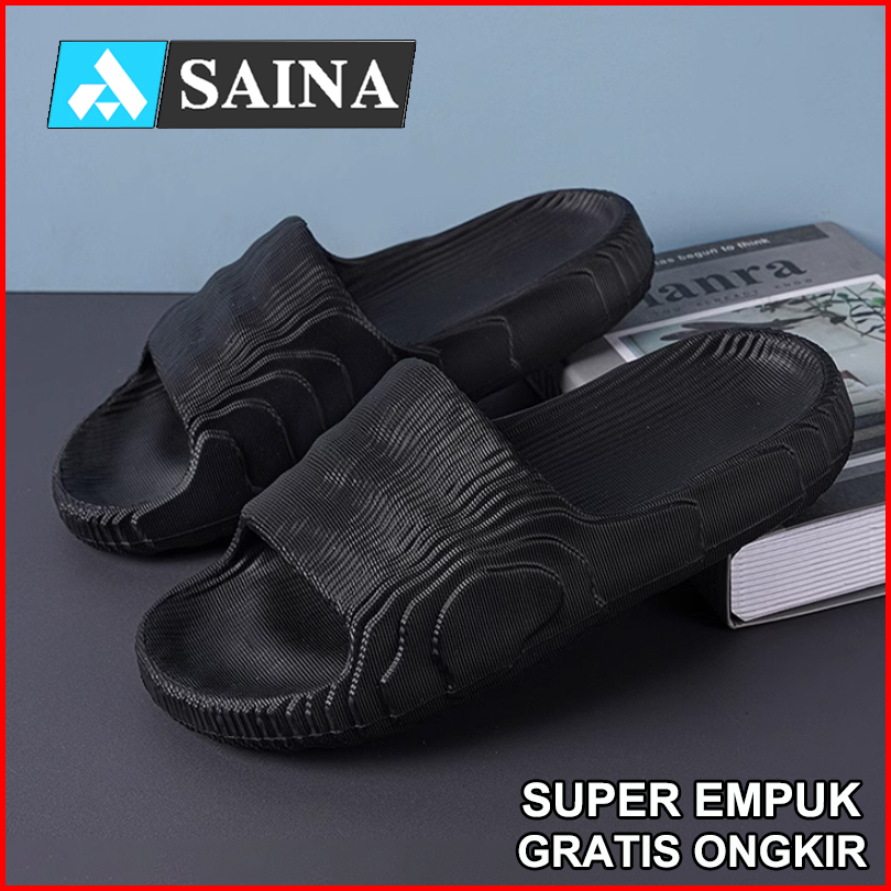 Sandal Pria Kekinian Dewasa Karet Murah Sendal Slide Slip On Kasual Flat Rumah Cowok Empuk Eva