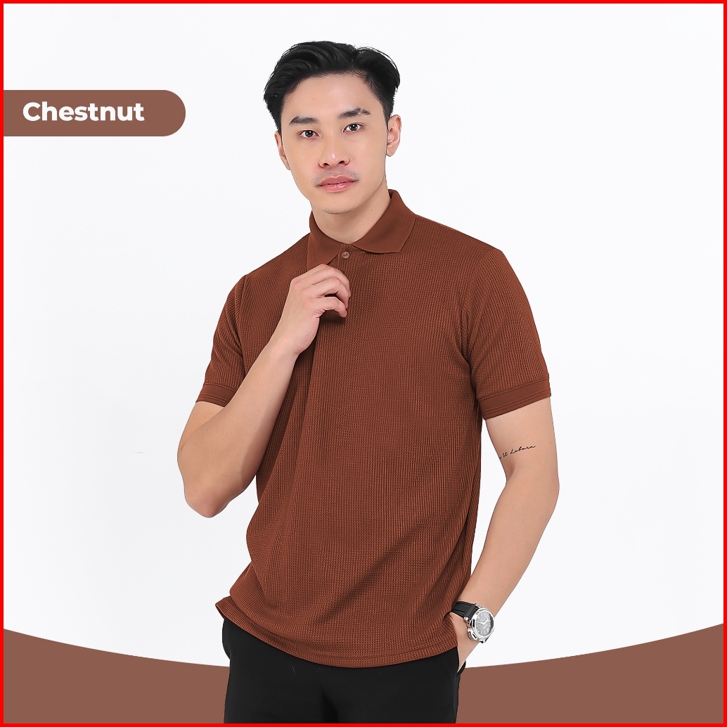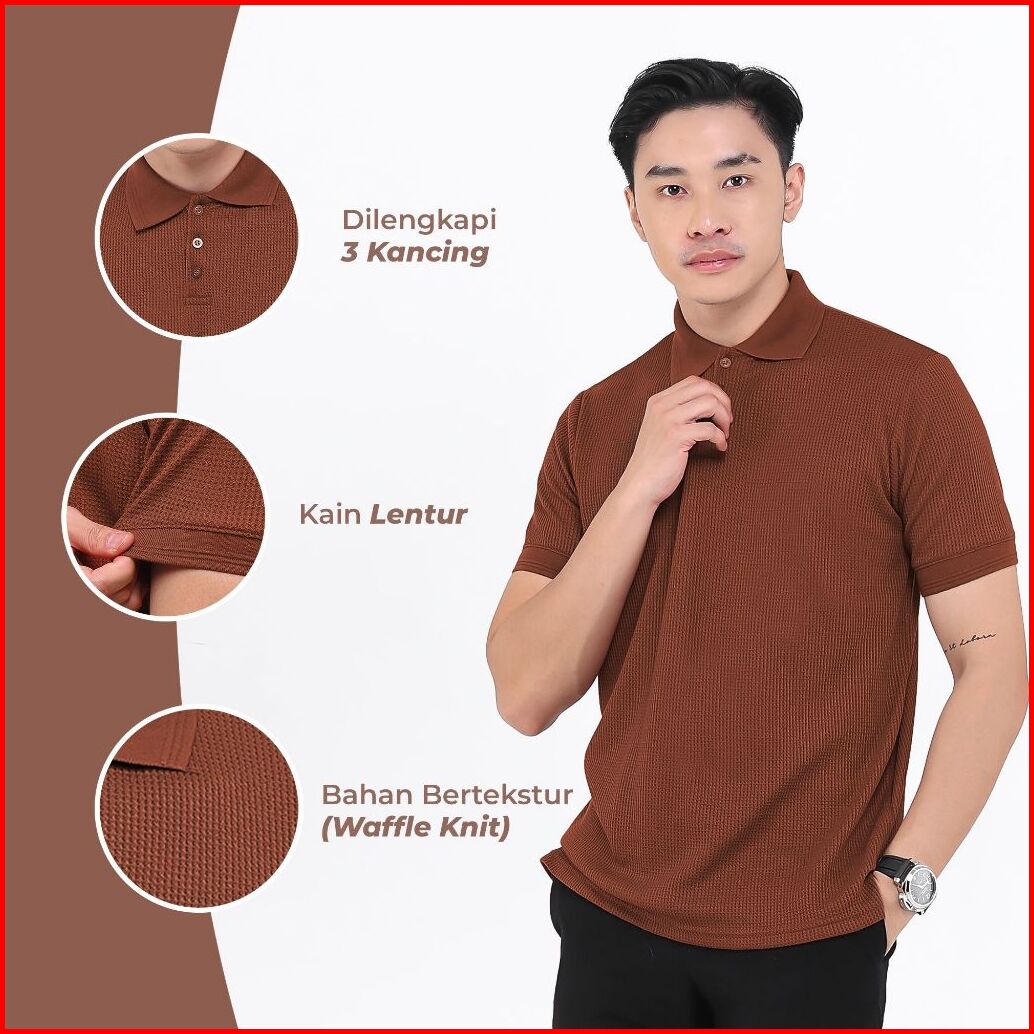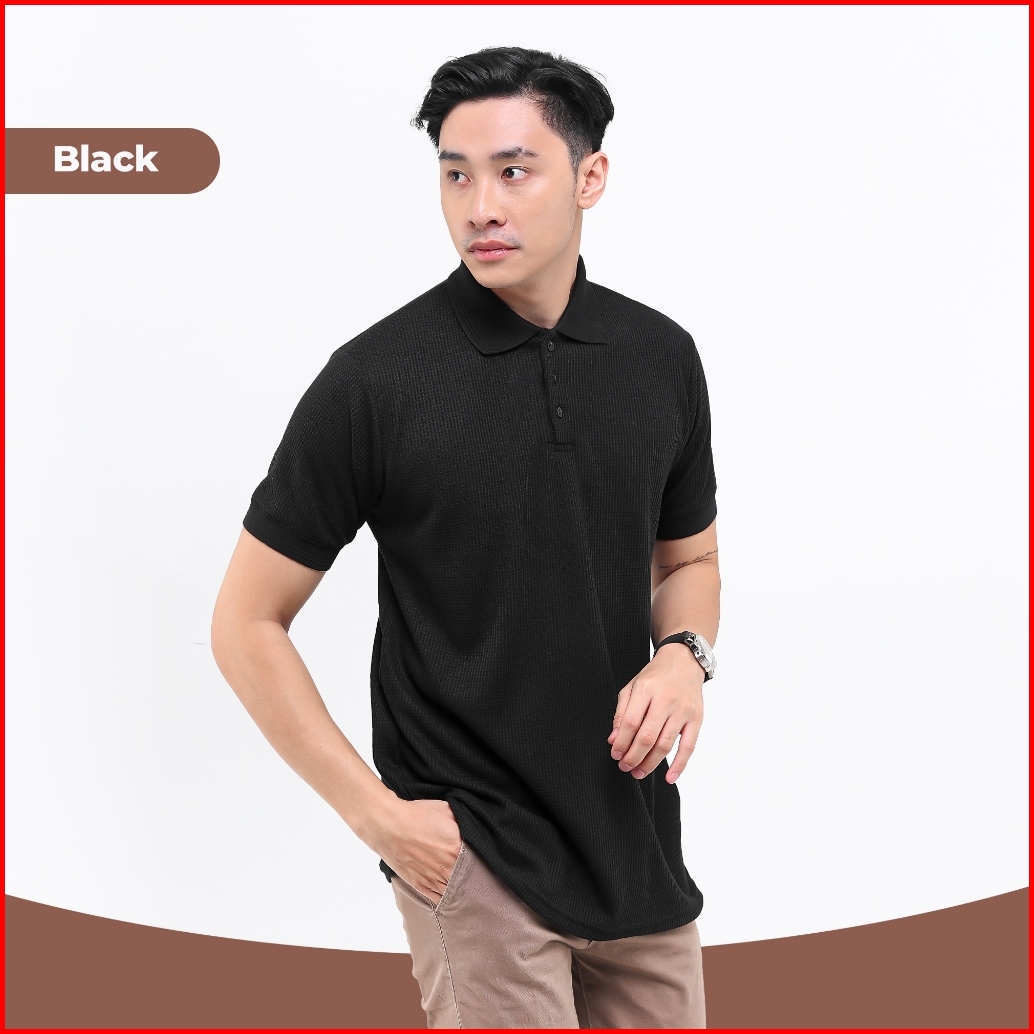 Broguy Kaos Polo Shirt Pria Waffle - Black