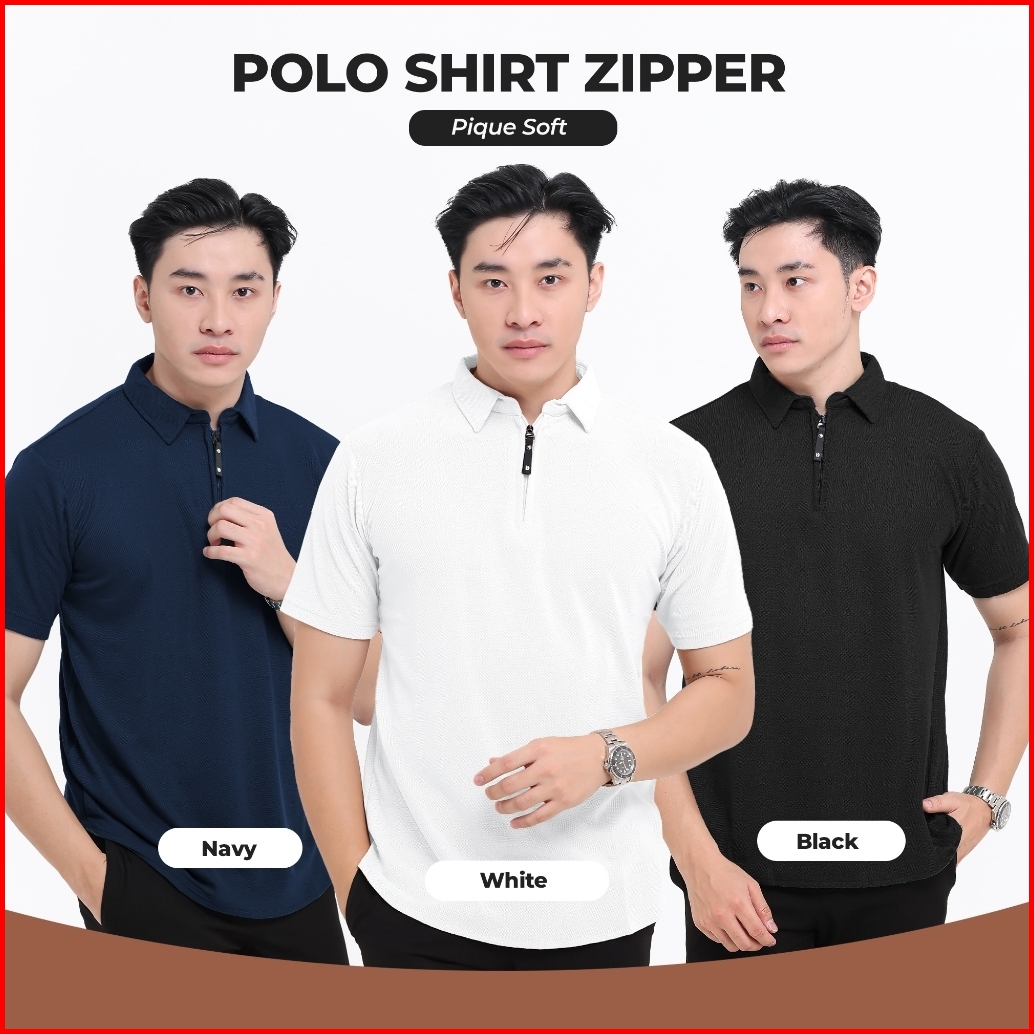 Broguy Kaos Polo Shirt Pria Kerah Lengan Pendek Zipper - Navy