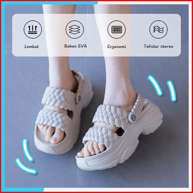Sandal Wanita Tali Karet Korean Style Jelly Premium Casual Sepatu Sendal Tinggi Wanita Selop Tenun 5cm Kekinian Ruangan