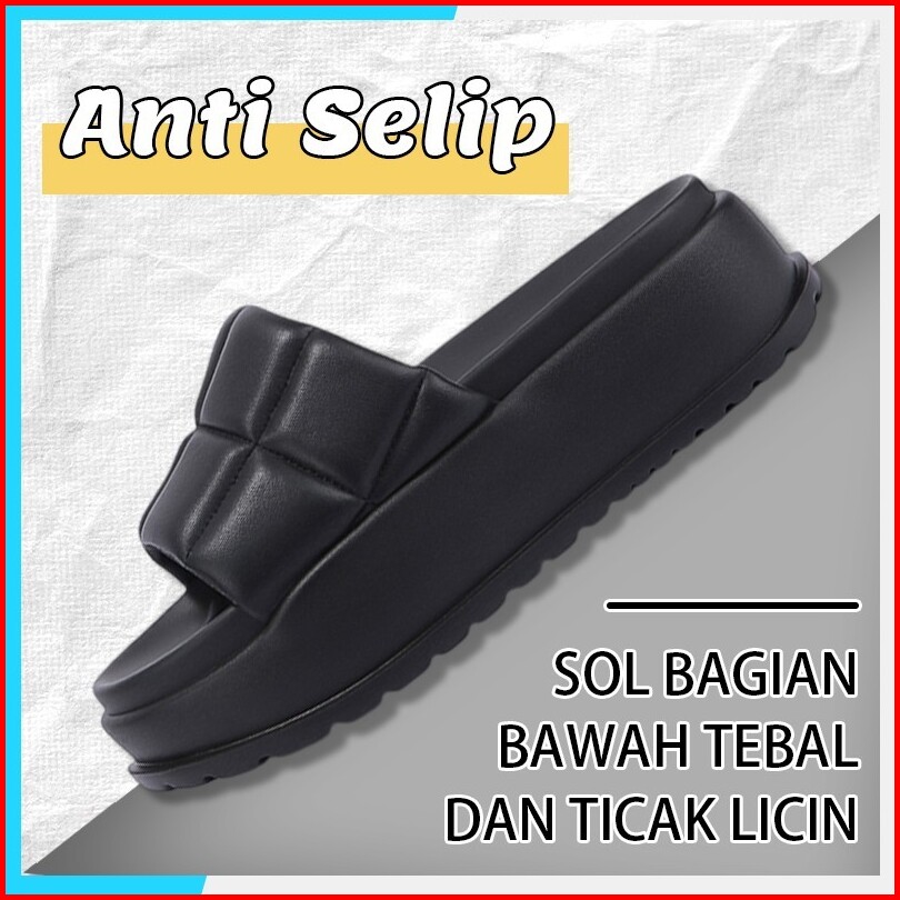 Sandal Wedges Spon Wanita Karet Kekinian Korea Terbaru 5cm Sepatu Sendal Rubber Wanita Platform Tebal Premium Empuk Casu