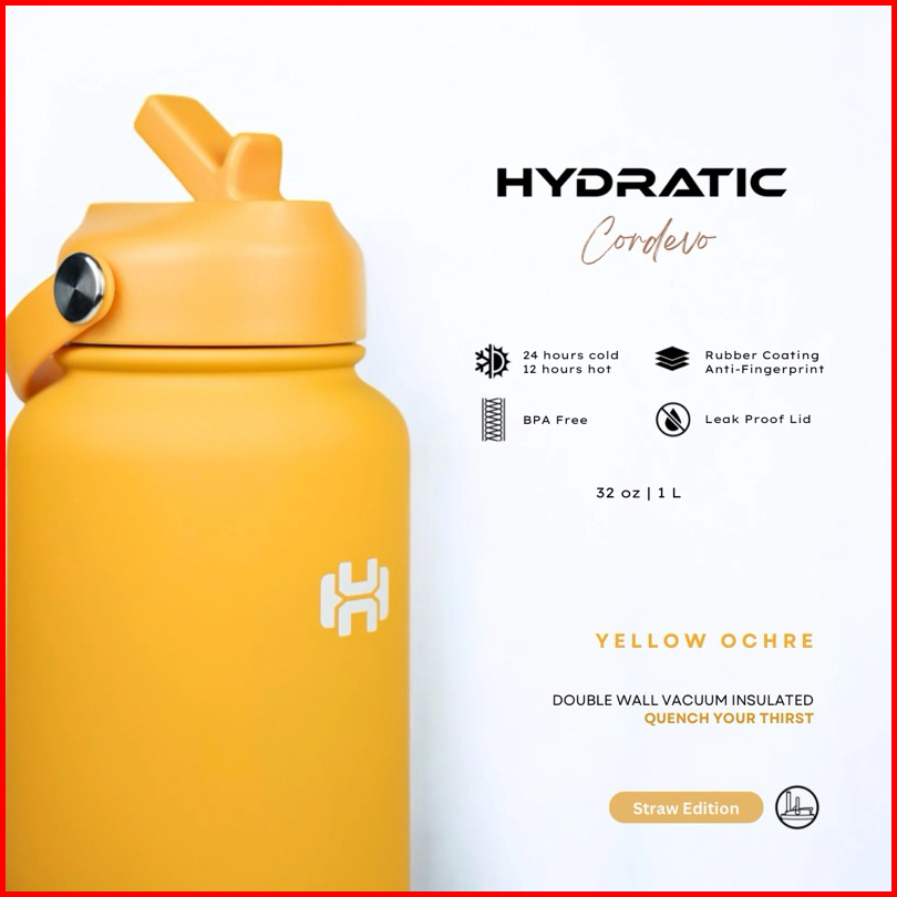 Botol Minum Tumbler Hydratic Cordevo 32oz 1l - Tahan Panas Dingin 12 - 24 Jam - Yellow Ochre - Stainless Steel Double