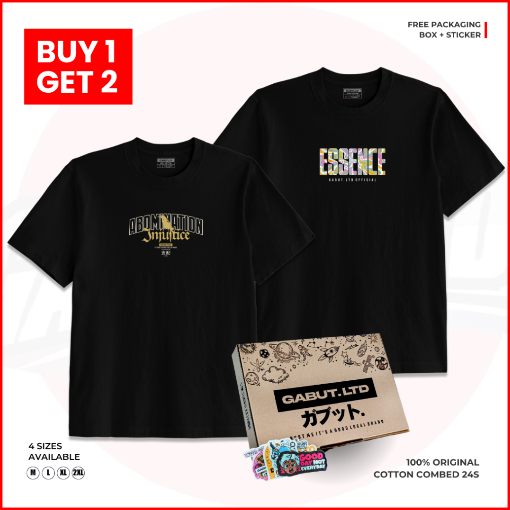 Gabut - Paket Bundling 2pcs Baju Kaos Distro Pria Wanita Motif Abominasion Dan Essence Cotton Combed 24s Kaos Obl