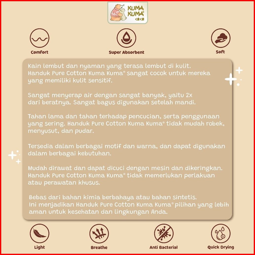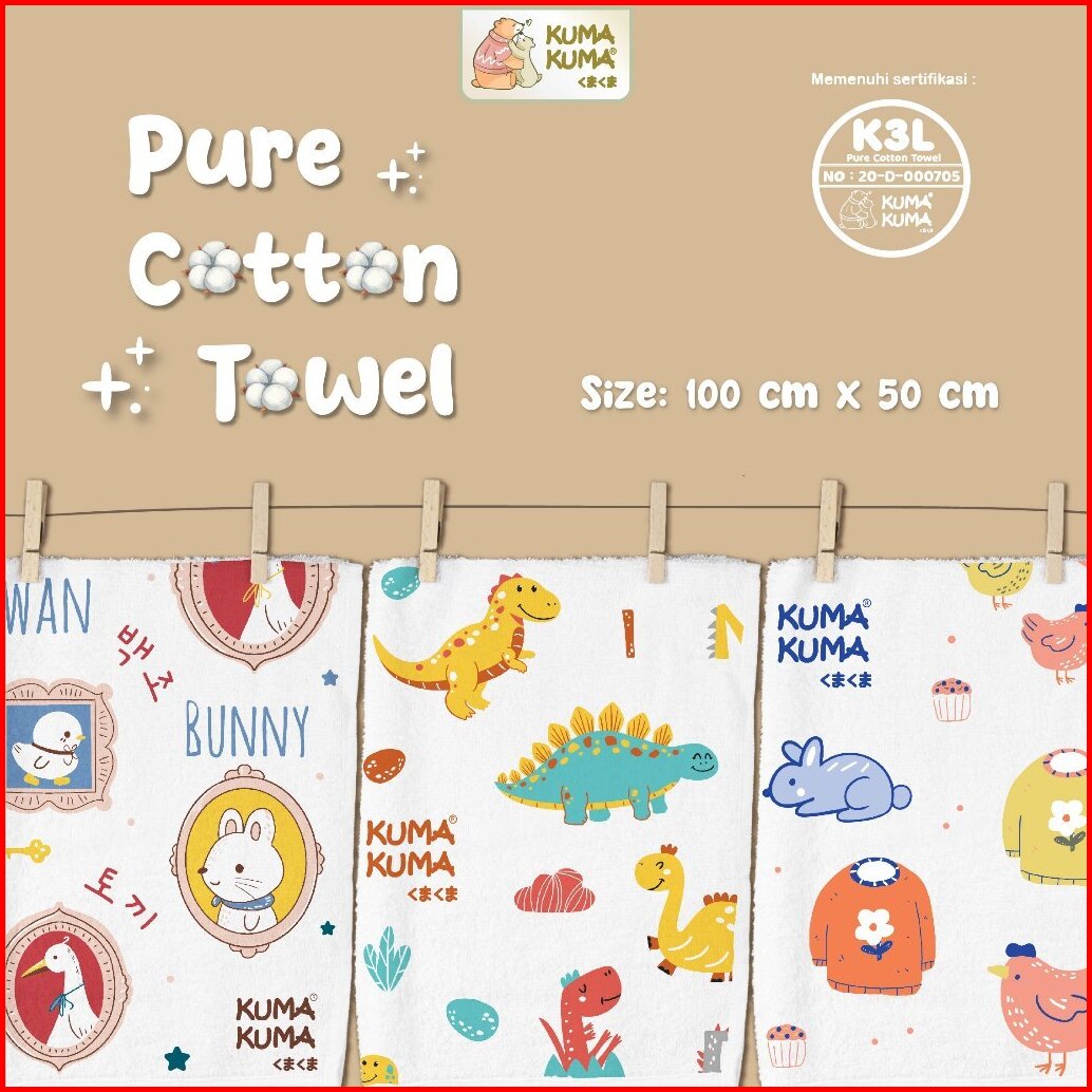 Kuma Kuma Pure Cotton Handuk Mandi Bayi Premium Baby Towel Kuma Kuma