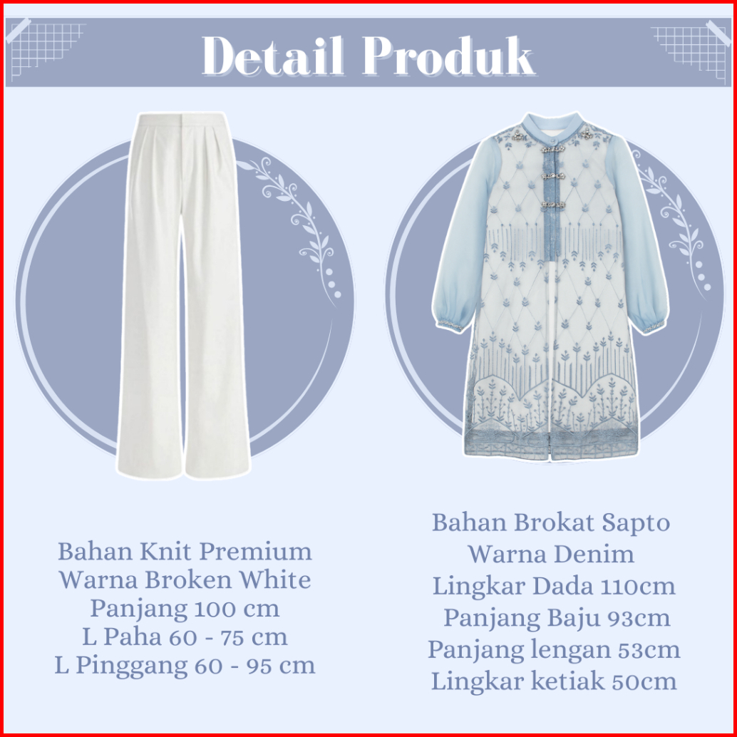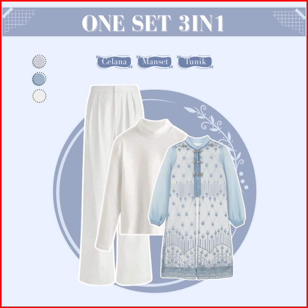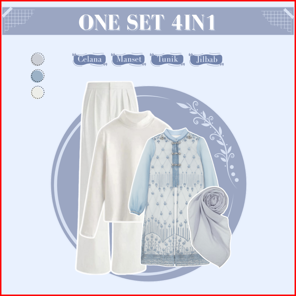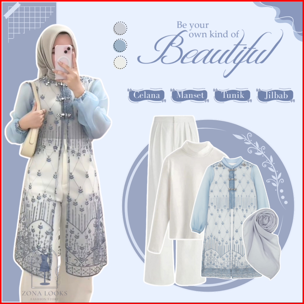Setelan Lebaran Remaja Manset - Tunik Brokat - Celana Kulot - Jilbab One Set Denim Outfit Zl167n