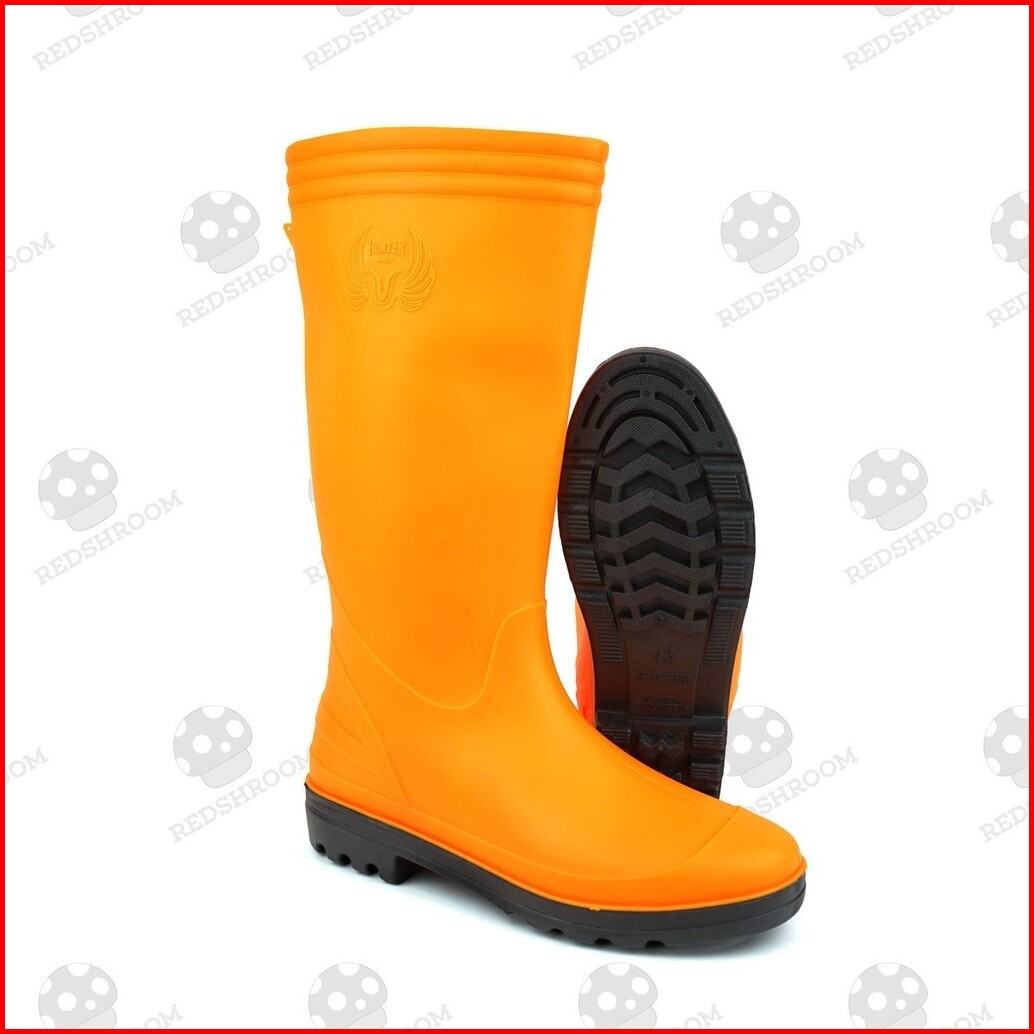 Sepatu Boot Tinggi Hunter Sp Orange Boots Karet Lokal Anti Air Slip Proyek Konstruksi