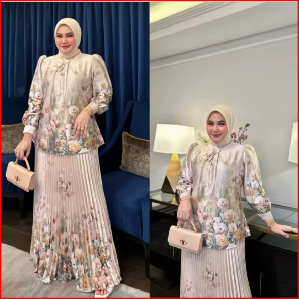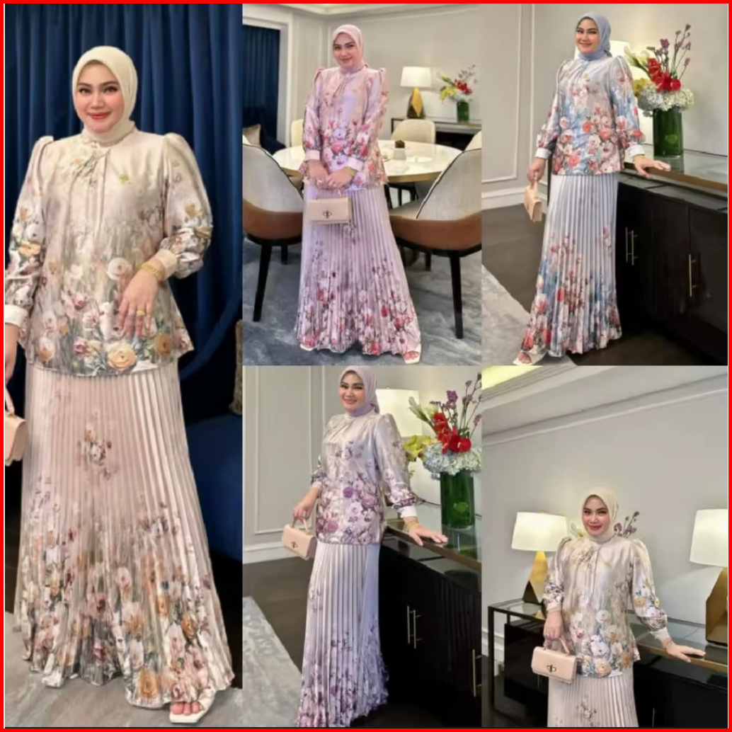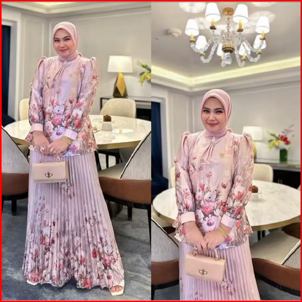 One Set Rok Muslim Lionel 2 In 1 Motif Bunga Terbaru