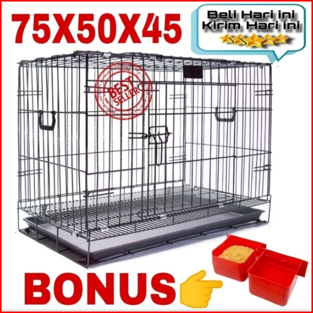 Sangkar Kucing Lipat Super Jumbo 92x75x62 Bonus Tempat Makan 2 Pcs