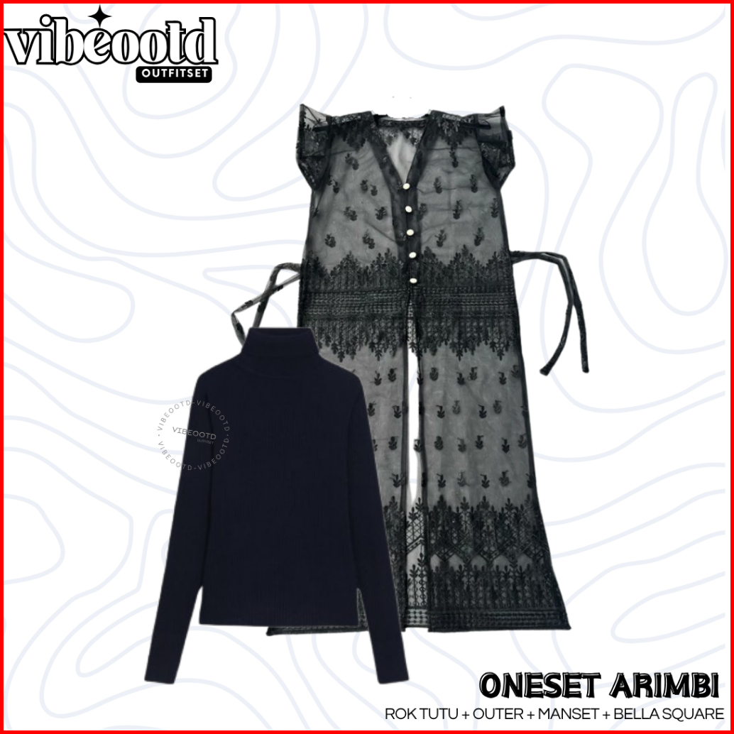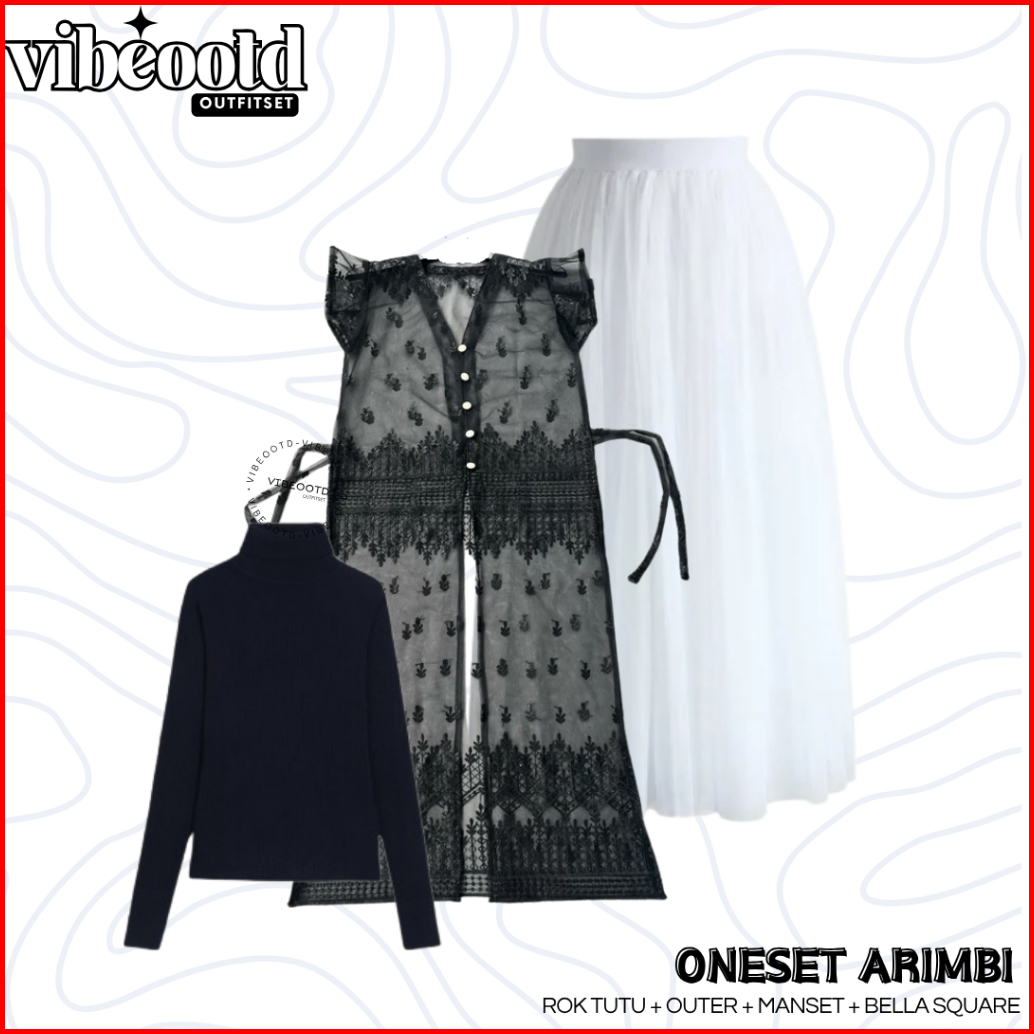 Arimbi Outfit Set Wanita Hijab Rok Tutu Putih Outer Brokat Long Etnik Inner Manset Bella Square One Set Kondangan Simple