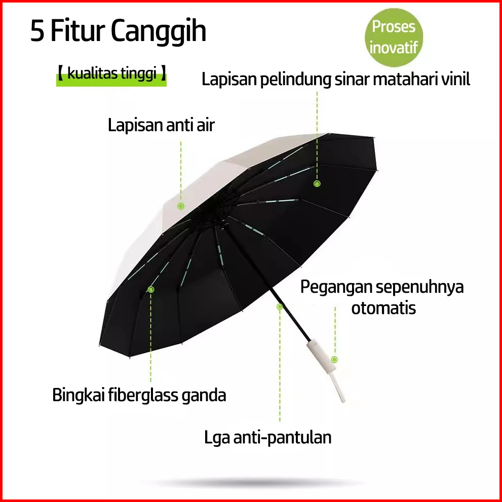 Payung Lipat Premium 24 Ruas Otomatis Buka Tutup Anti Uv Payung Kokoh Payung Hujan Kualitas
