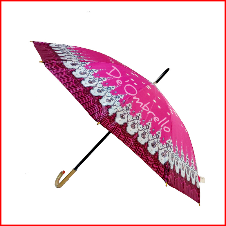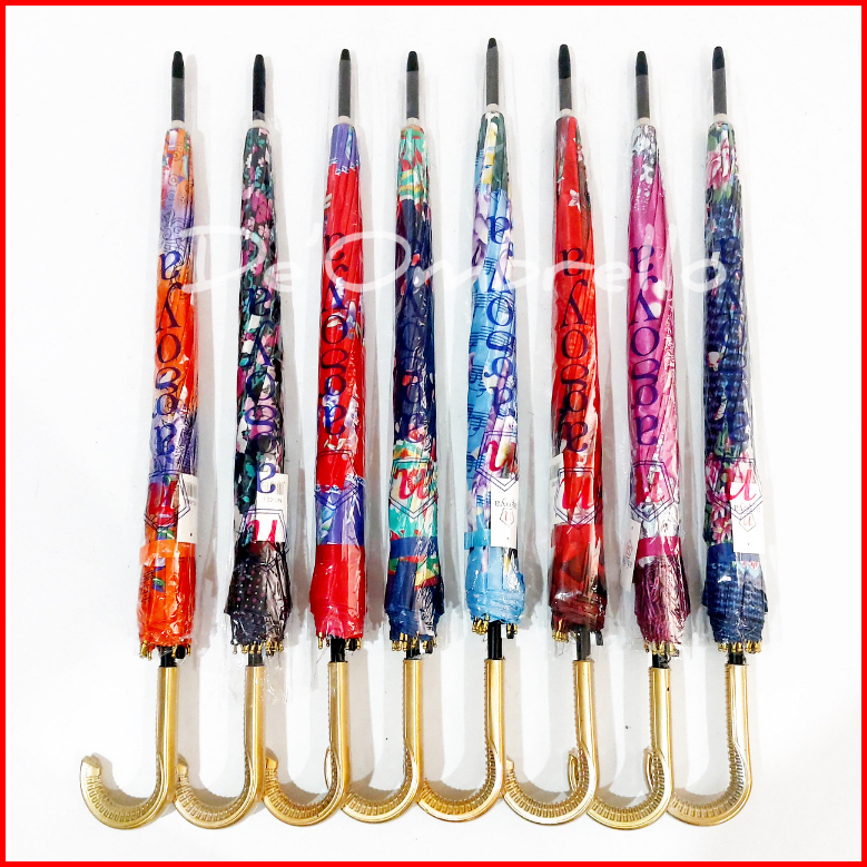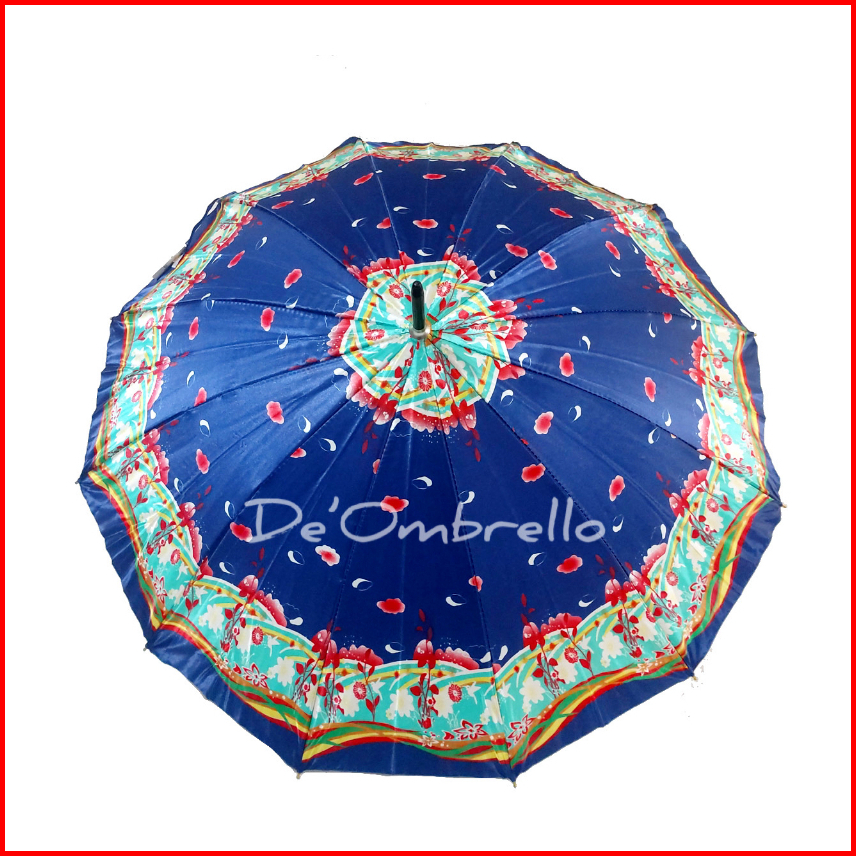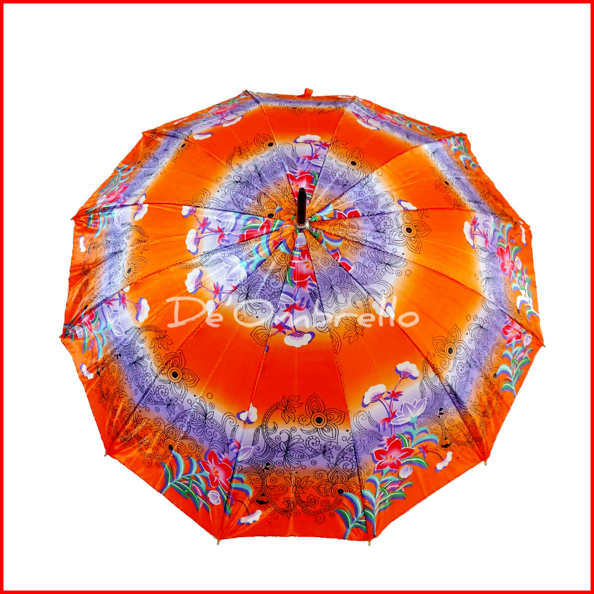 083 Payung 12 Jari Bahan Saten Motif Kembang Campur Gagang Premium Quality Umbrella
