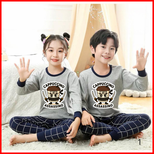 Dealshop Baju Tidur Anak Untuk Umur 1 - 10 Tahun Motif Cappucino Assasino Setelan Anak Laki - Laki Stelan Anak Perempuan