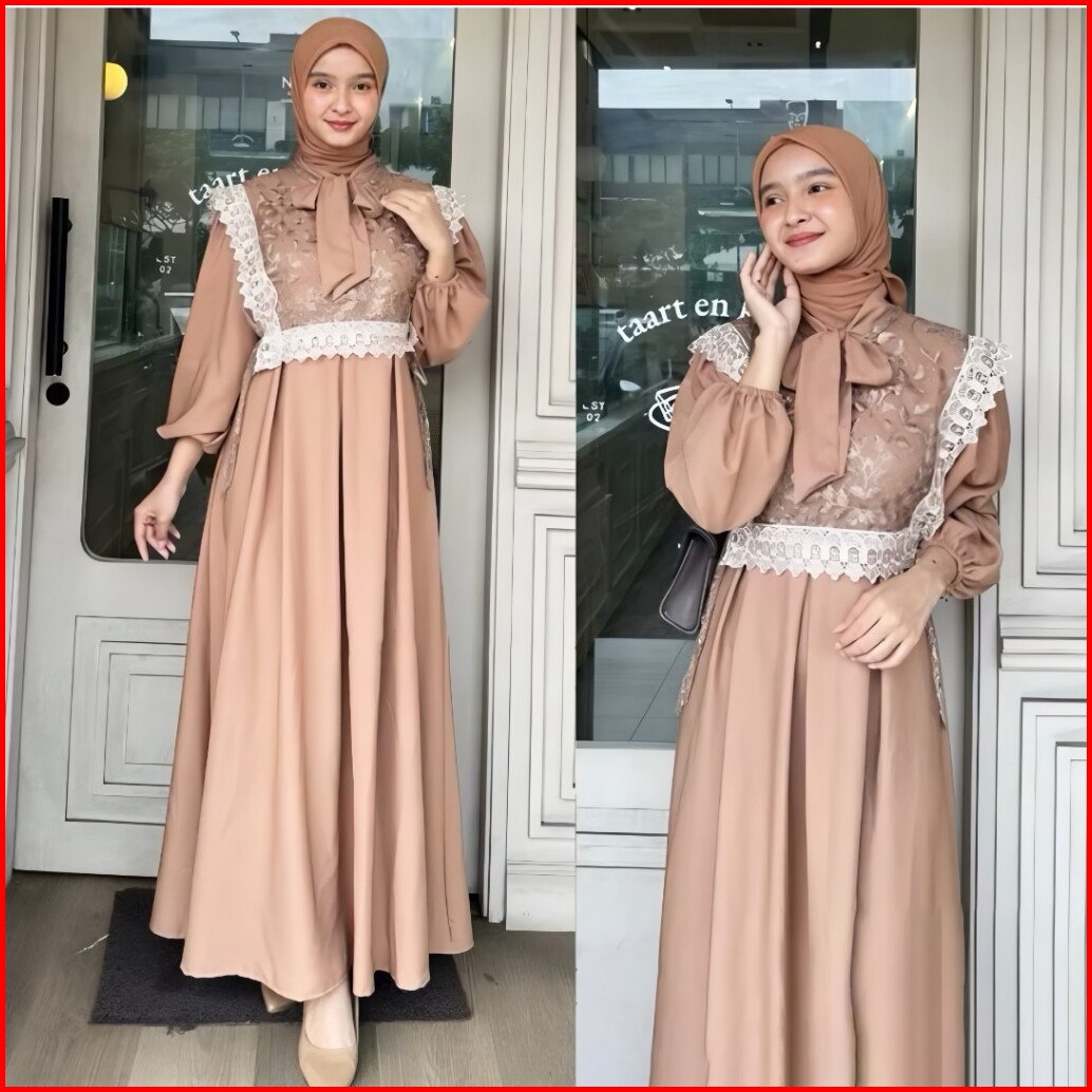 Dress Kondangan Gamis Muslimah Syakila Model Rompi Tille Bordir Oufit Kondangan Mewah Terbaru 2025