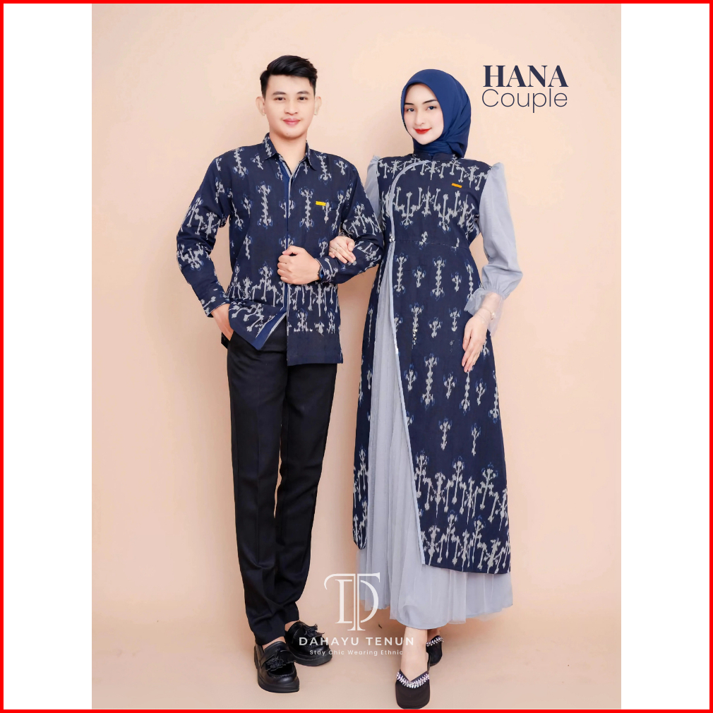 Dahayu - Hana Kemeja Gamis Dress Couple Tenun Etnik Kombinasi Tile Premium Pasangan Kondangan Mewah