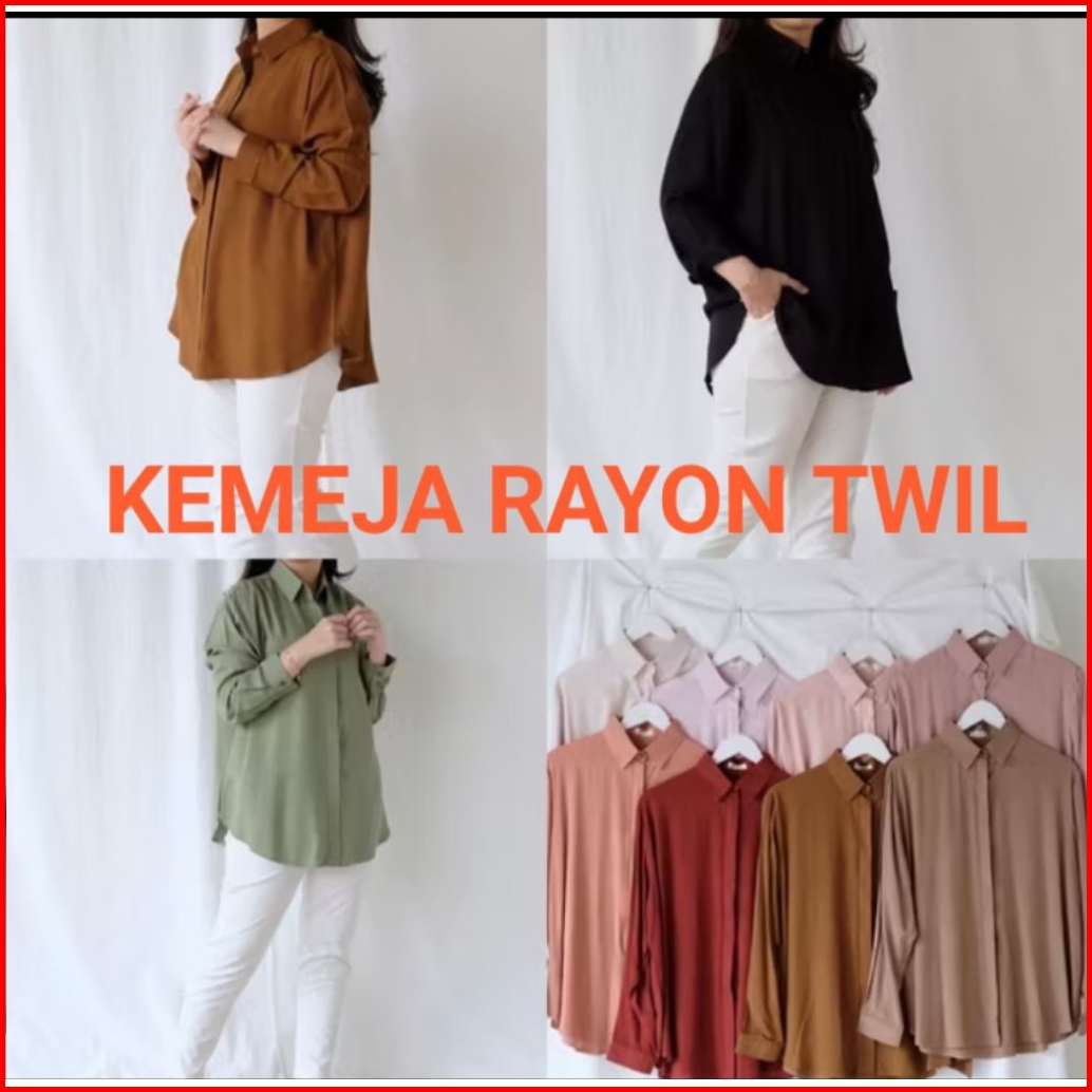 Kemeja Loose Basic Rayon Twil Premium Atasan Wanita Masa Kini