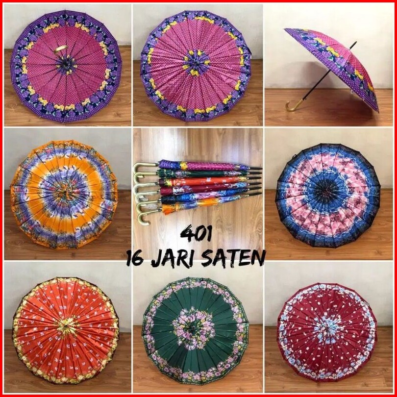 Payung 16 Jari Satin Saten Tebal Mengkilap